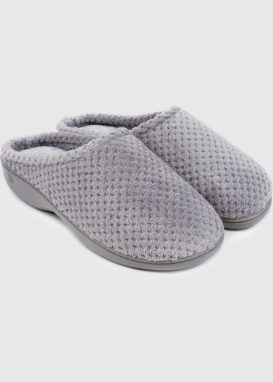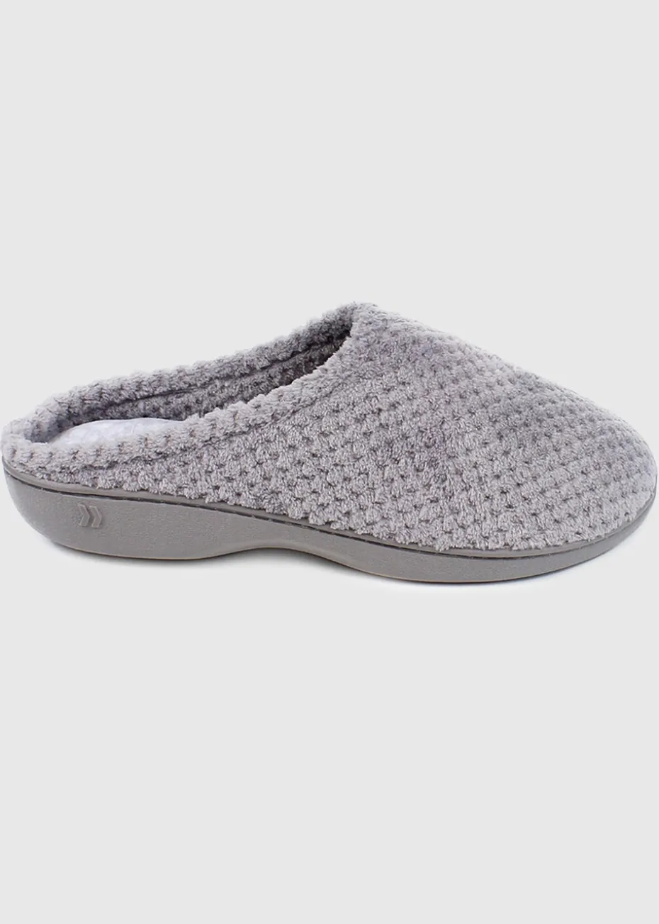 Totes Isotoner Grey Popcorn Terry Mule Slippers
