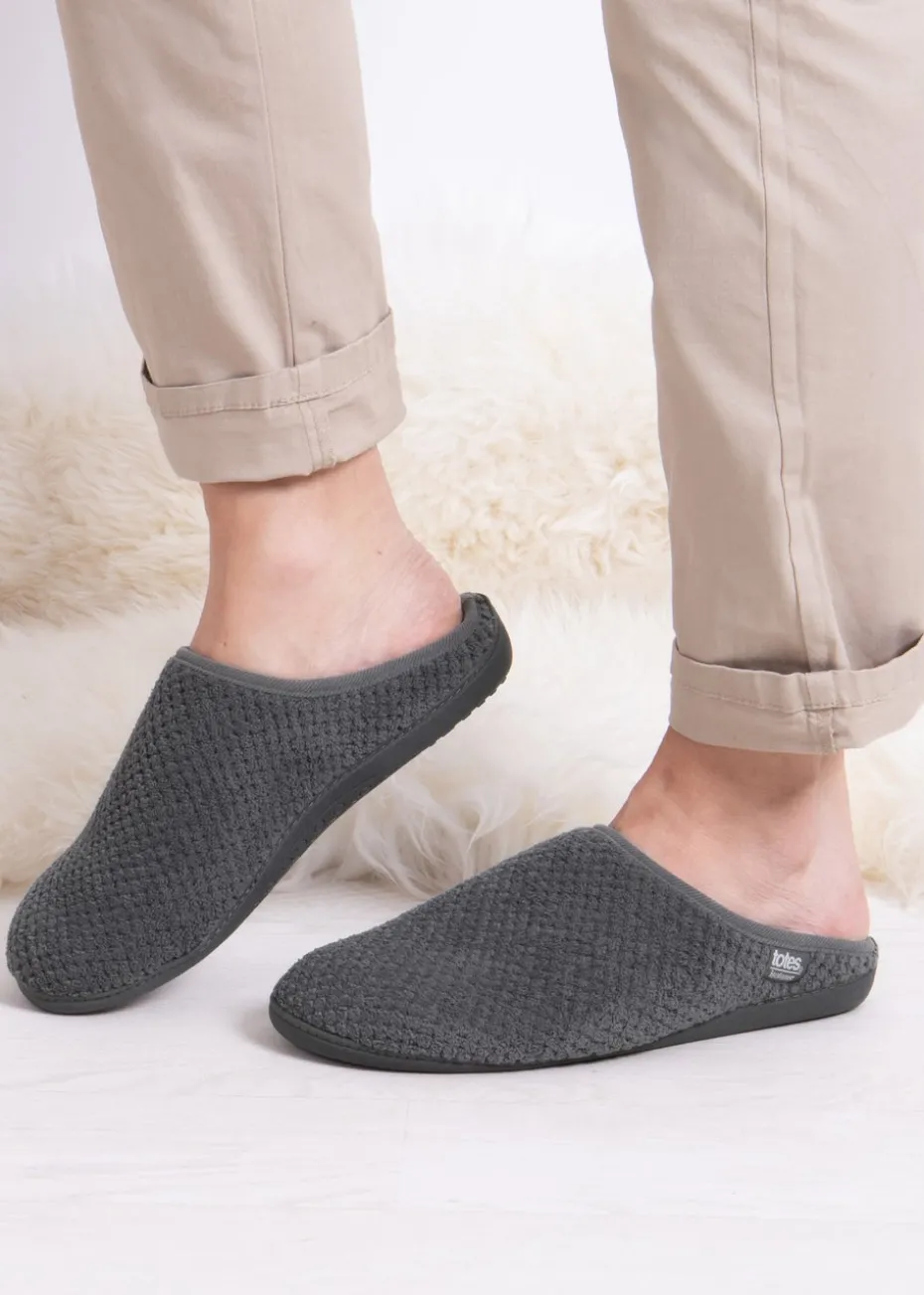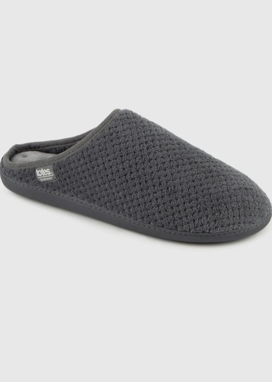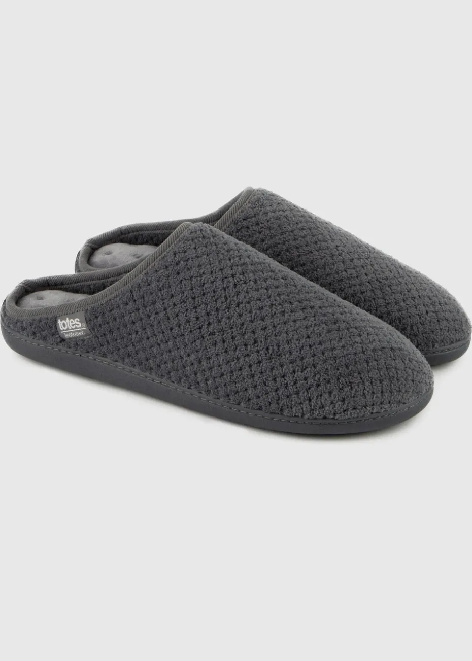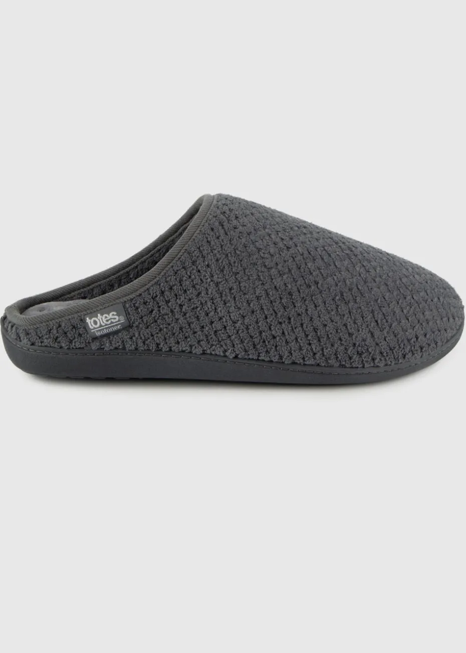 Totes Isotoner Grey Swept Back Popcorn Mule Slipper