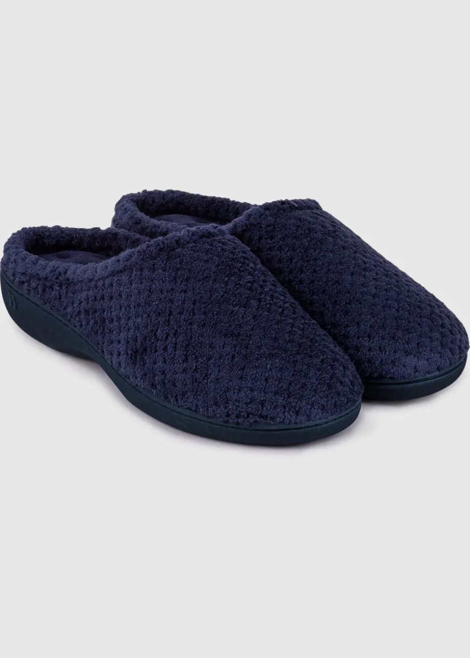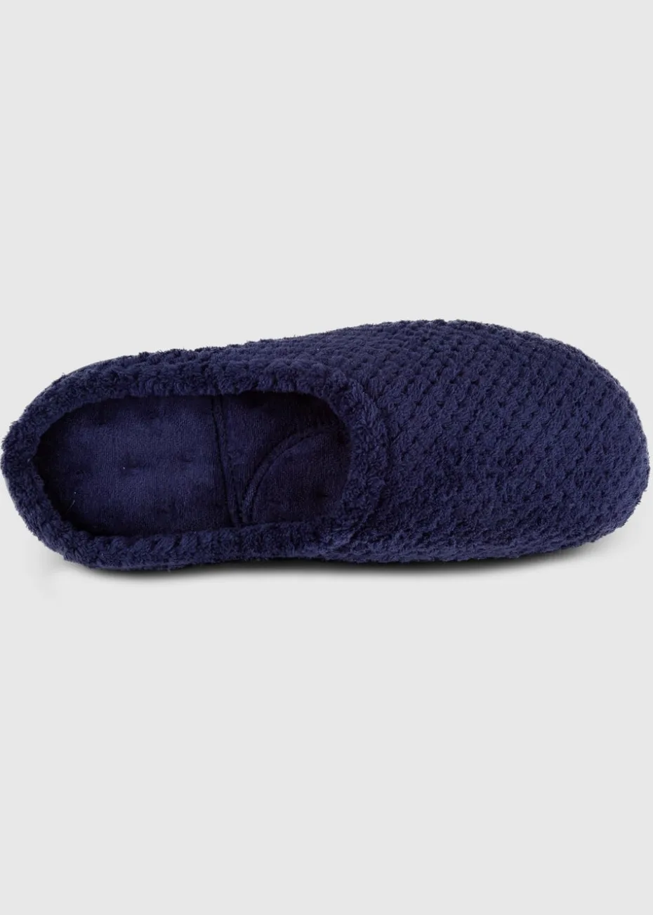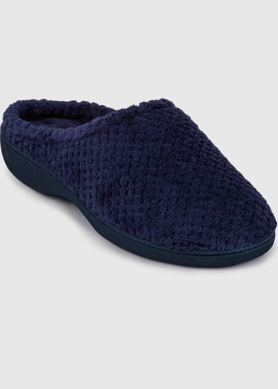 Totes Isotoner Navy Popcorn Terry Mule Slippers