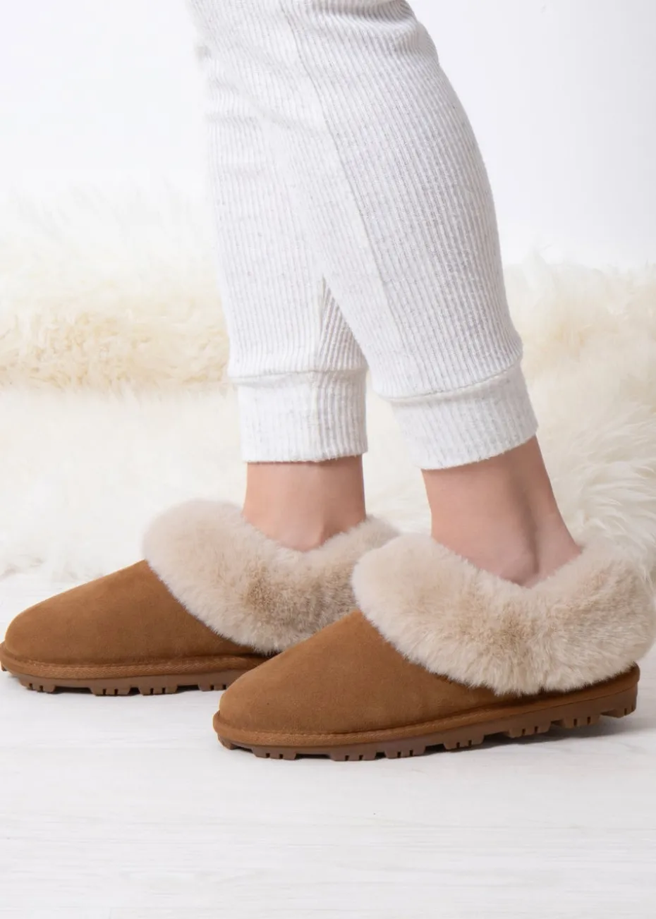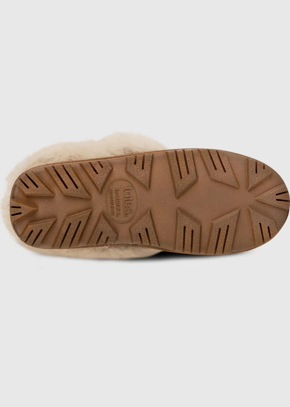 Totes Isotoner Tan Genuine Suede Bootie With Fur Cuff & Lining