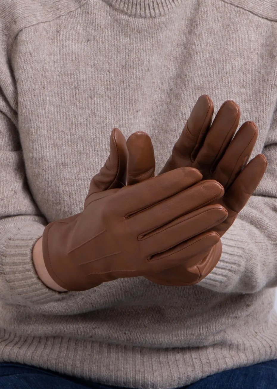 A smart classic for the winter months in either berry or tan, our Isotoner three-point leather gloves (with lines of stitching on the back) are the perfect accessory for your winter wardrobe. Made from 100% genuine leather with a water-repellent coating for additional protection, they feature a supersoft lining for warmth and comfort. The gloves also include SmarTouch technology on the index finger and thumb, allowing you to use your touchscreen devices without removing them when it’s really too cold to take them off.