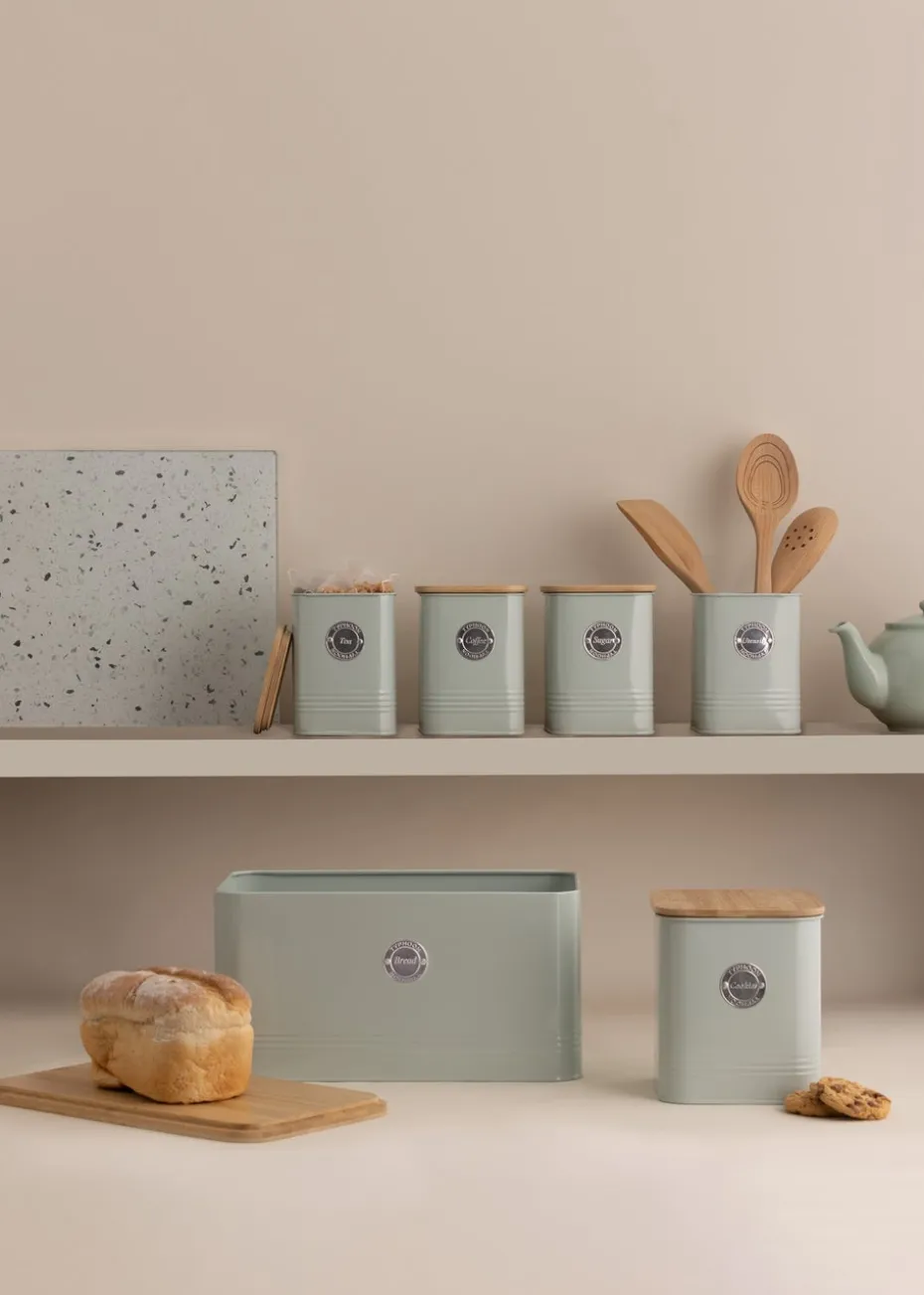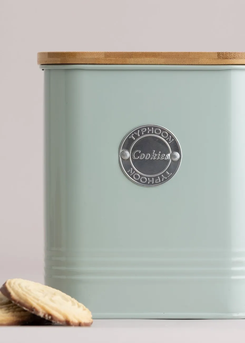 The Typhoon Living Squircle Cookie storage canister features a stunning mint green design with rounded edges, which will look lovely on any kitchen worktop. The chrome “Cookie” badge gives a touch of elegance while being practical and keeping you organised. With a generous 2.7 Litre capacity, it is ideal for storing baked goods, while the airtight seal helps to keep contents fresher for longer. Made from 100% recyclable steel with a bamboo lid, this canister is the perfect combination of style and practicality. Part of a wider Living Squircle range. H 17 x W 15 x D 15cm 2.7ltr