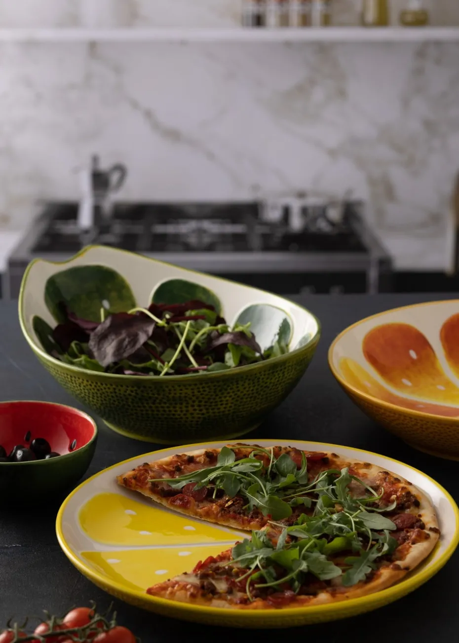 The World Foods fruits collection is a fun way to add colour and vibrancy to mealtimes. The lemon round serving platter features a yellow embossed design underneath and segment design on the inside. Produced from ceramic and hand finished with a durable glaze, the bowls are ideal for both indoor and outdoor dining. Available in a selection of sizes, they are perfect for serving dips, snacks, pasta and salads. They also make great prep and side bowls. The Typhoon World Foods collection includes cook and serveware for those who love to cook or serve dishes from around the globe.