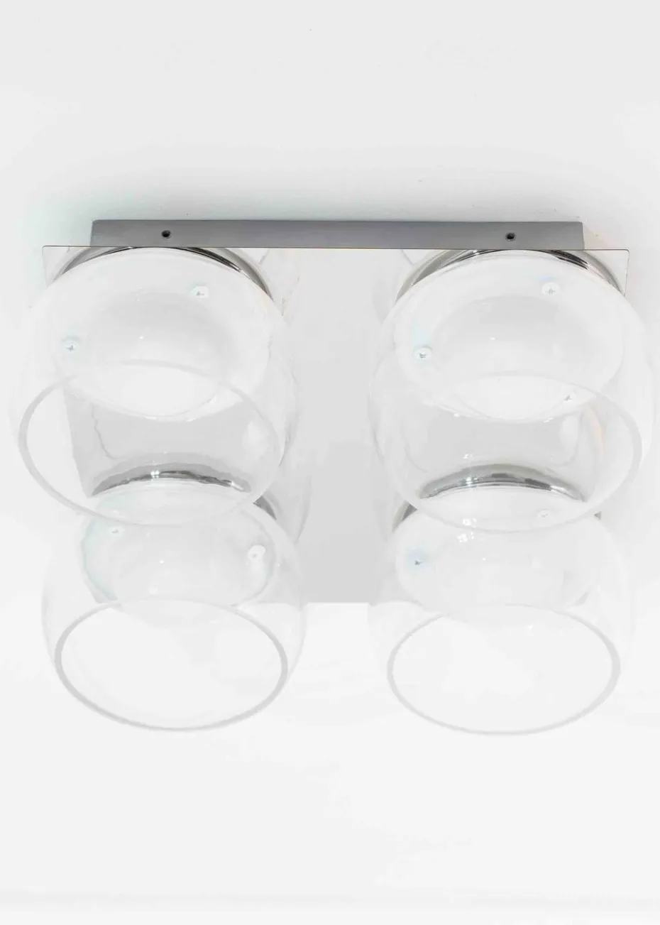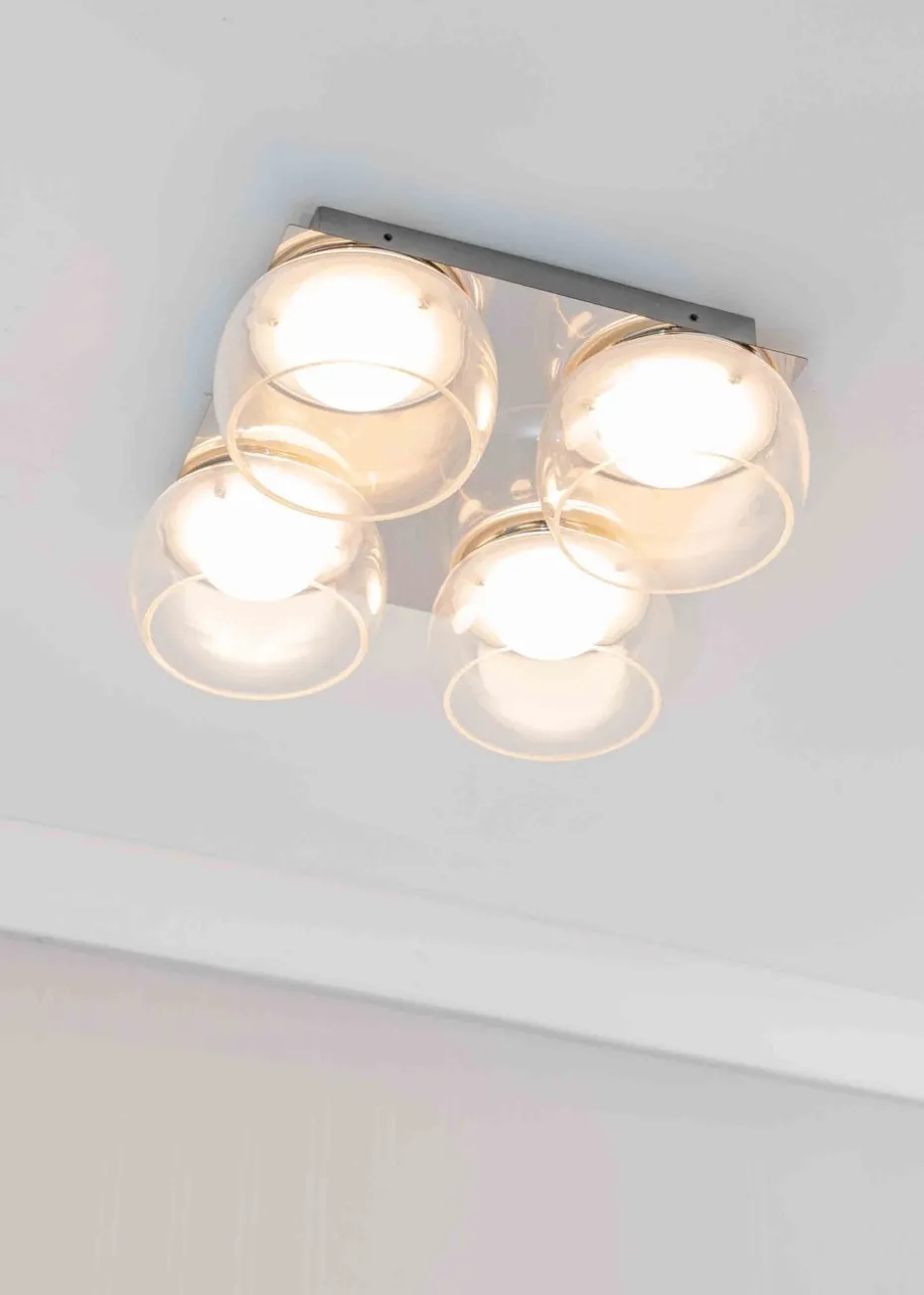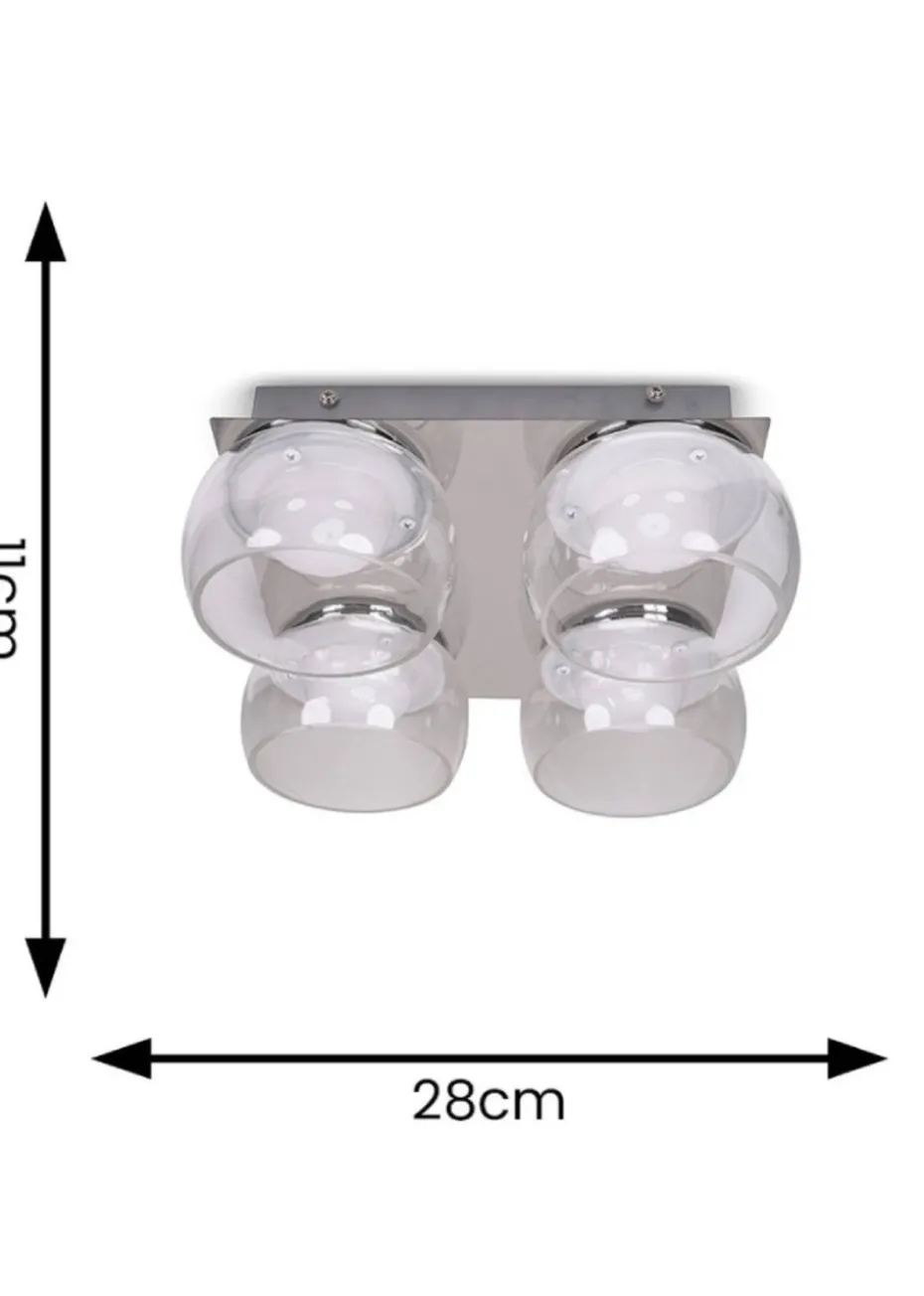 Introduce a contemporary element to your home décor with this four way ceiling light fitting. Suiting any living room, bedroom or bathroom this ceiling light features statement metal with glass shades. The integrated LED bulbs give off a warm white glow, perfect for creating a soft ambiance. With a perfect balance of style and functionality, this light brings a touch of modern sophistication to any space. Complete with Integrated LED bulb.