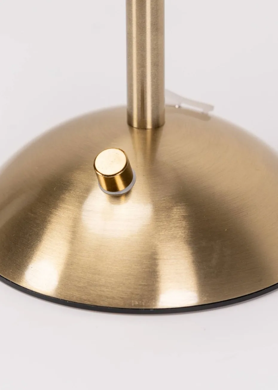Whether you need a reading light, a bedside lamp, or a decorative lamp for outdoors, our rechargeable dimmable table lamp is a versatile addition to any space. With a built in rechargeable battery that allows the lamp to go cordless and be placed anywhere in the room, without the need for a socket. Simply charge up with the USB plug then touch the switch to turn the light on and off or hold for dimming. This on trend mushroom design lamp gives off a warm white glow, has three brightness levels and comes in a gold finish with a clear tapered lampshade. Please Note – The recommended charging time for full charge is at least 1-2 hours to get 3-4 hours glow time. Charge the lamp at least once a month to prolong the battery life. Includes integrated LED bulbs.