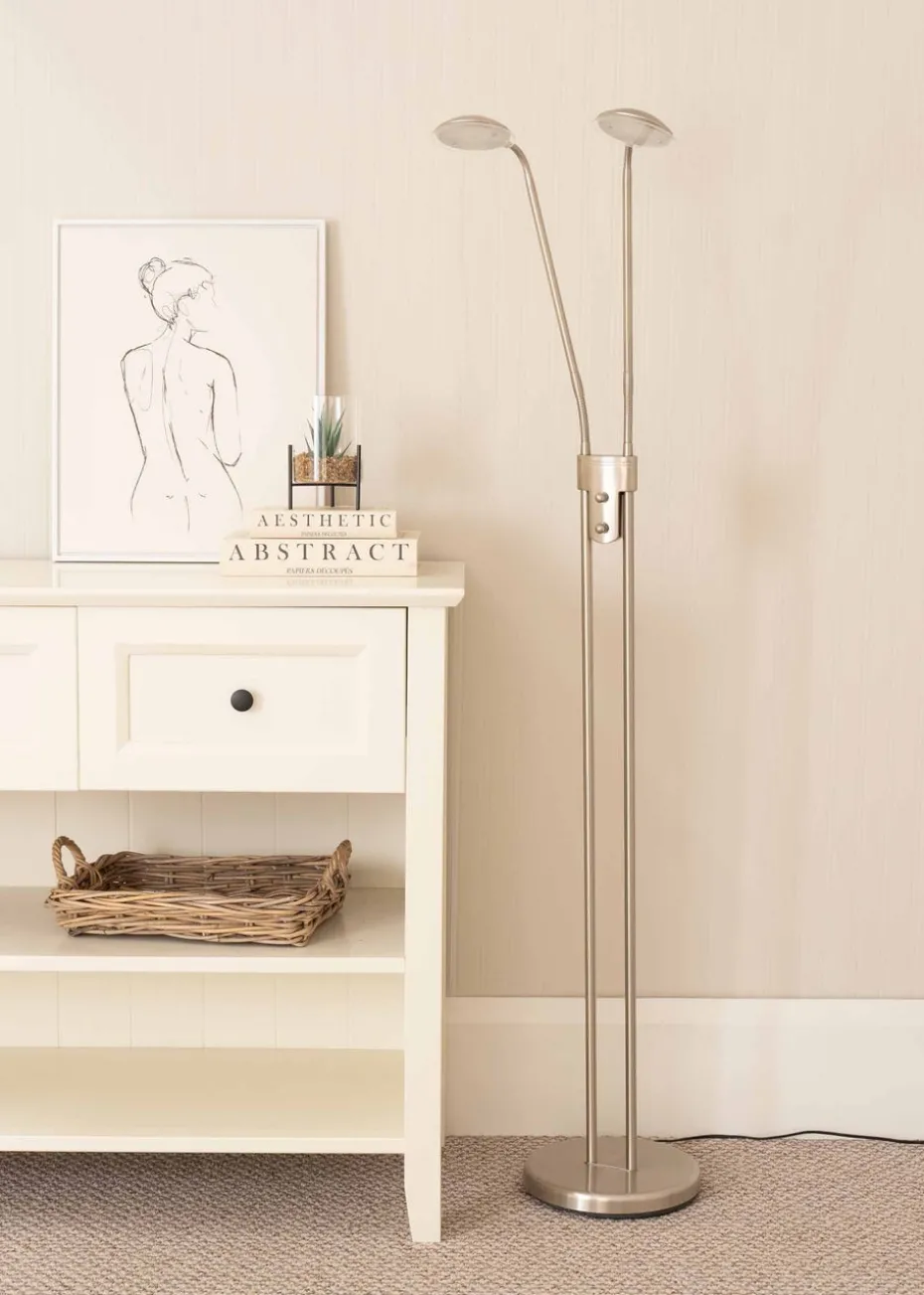 ValueLights Beata 2 arm Dimmable Brushed Silver Floor Lamp