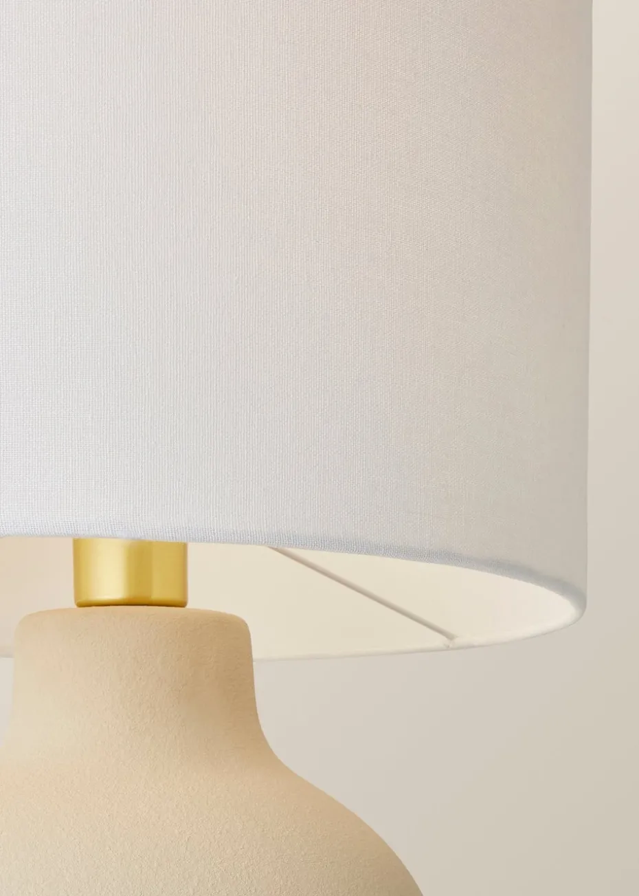 Blair’s lighting up your life, one stylish glow at a time! With a hand-finished round beige ceramic base, this lamp brings texture and charm to any room. The metallic cap and colour-matched fabric cable keep things chic and coordinated, while the white linen shade softens the light for a warm, cosy atmosphere. Blair’s the perfect mix of elegance and functionality, making her a must-have for those who like their lighting both classy and effortlessly cool. Let Blair be the light of your life!