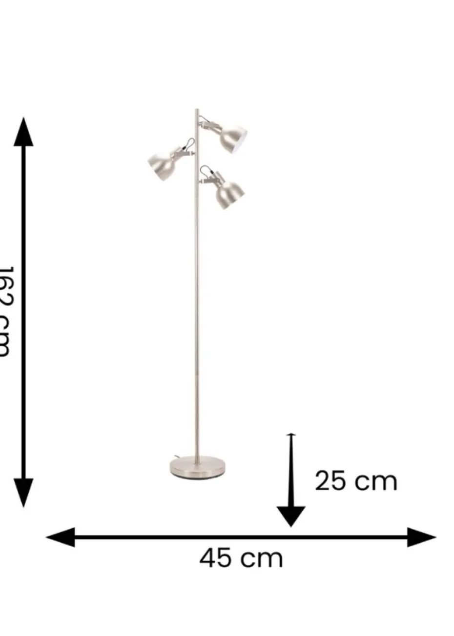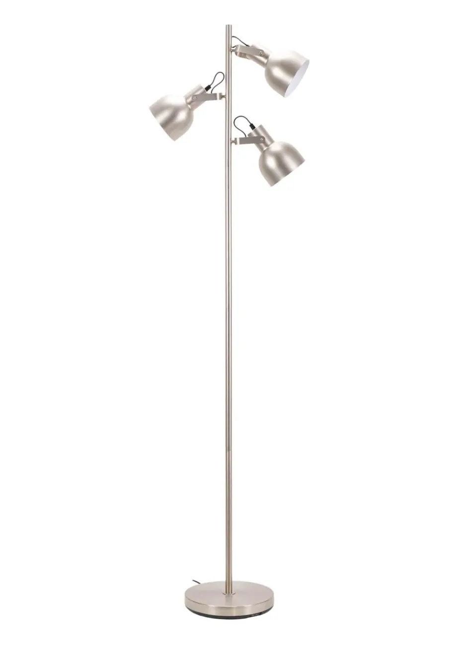 The Albie three way floor lamp in brushed chrome is a versatile design ready to be the finishing touch in any home. With adjustable lights to personalise your lighting dependent on your daily needs. Requires bulb with E14 fitting