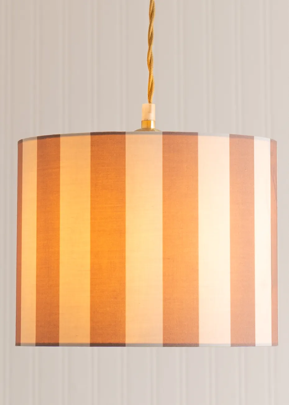 Callie is a light shade that combines natural and brown tones in a striking colour-clash stripe, bringing bold style to any space. The colour-matched inner adds a touch of elegance, making it as beautiful on the inside as it is on the outside. Perfect for a table lamp in your living room or bedroom, Callie’s unique design brings warmth and character, adding a cosy, earthy vibe wherever it’s placed. It’s the ideal way to light up your space with style and personality.
