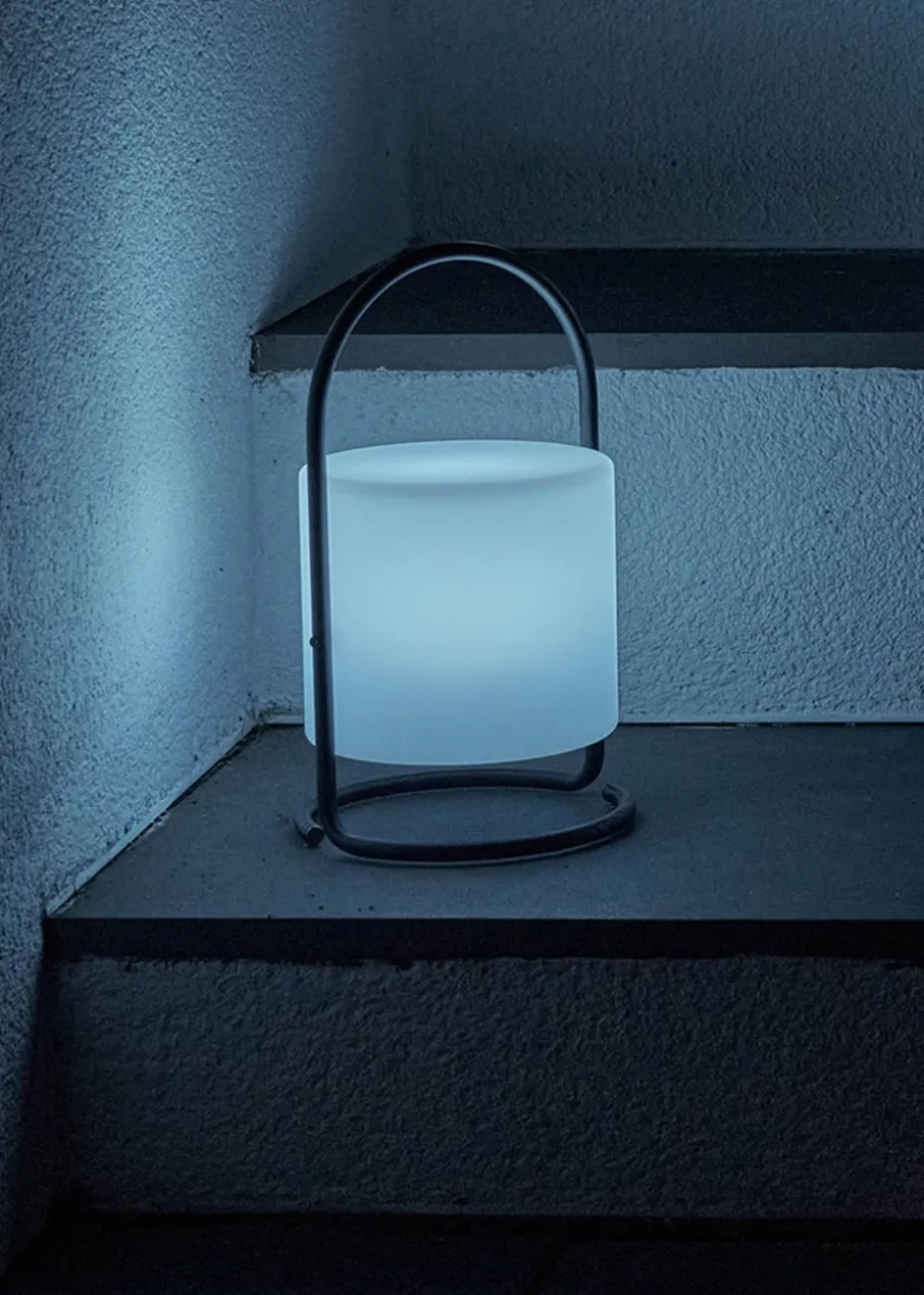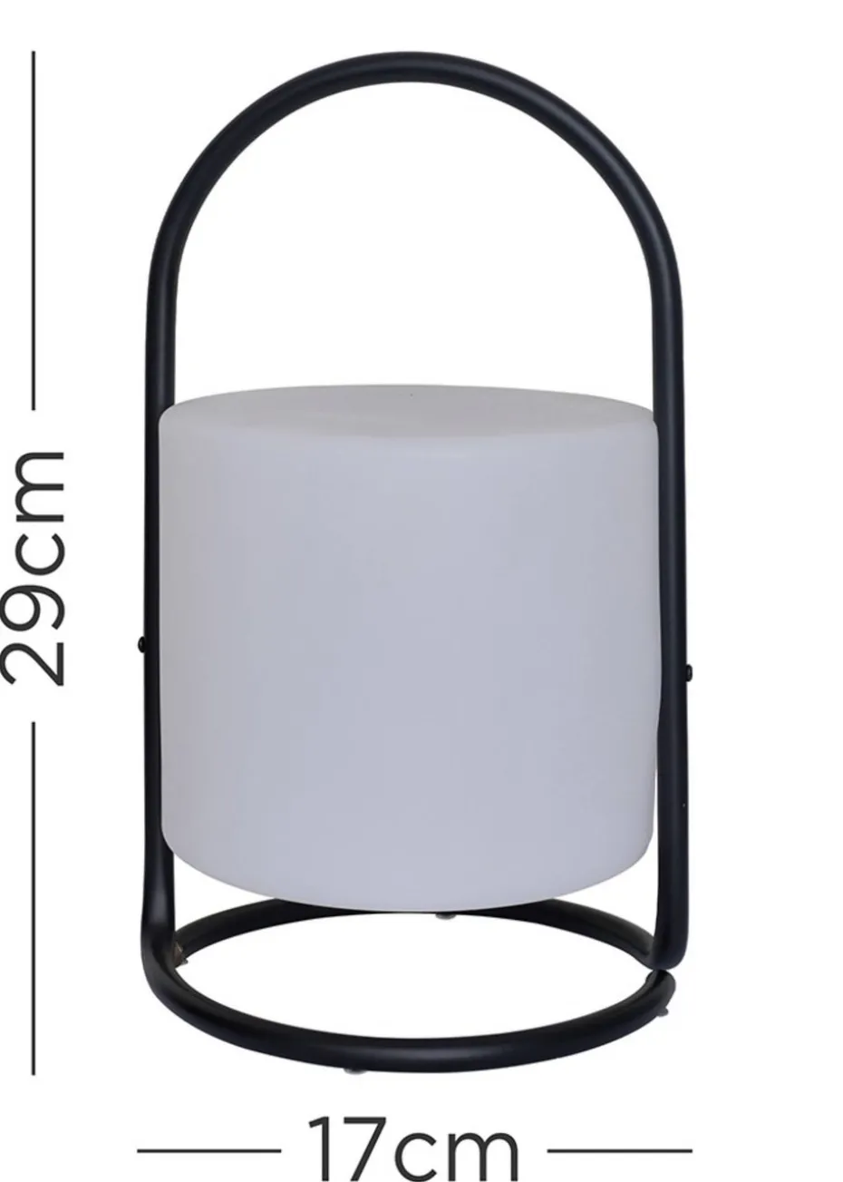 Functional and stylish, our Corte IP44 colour changing table light with cylinder shade is the ideal modern choice your home and outdoor space needs. The Corte rechargeable RGB colour changing lamp is lightweight and portable and comes complete with a USB port charger and a 1800MAH battery. Press the button on the underside of the lamp once to turn it on and allow the transition through the vibrant colours, or press again to find the perfect static colour for you and your space. It’s black metal handle allows for ease of movement in and around your home, but also in your outdoor space. Dot them around your patio area or use as a centrepiece on your outdoor dining table! So, whether you’re hosting a garden party, relaxing infront of the TV or doing a spot of bedtime reading in bed, the perfect vibe is in your hands. Includes integrated LED bulbs.