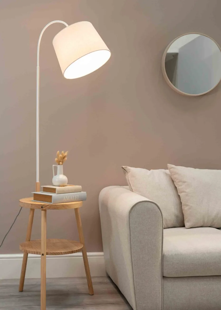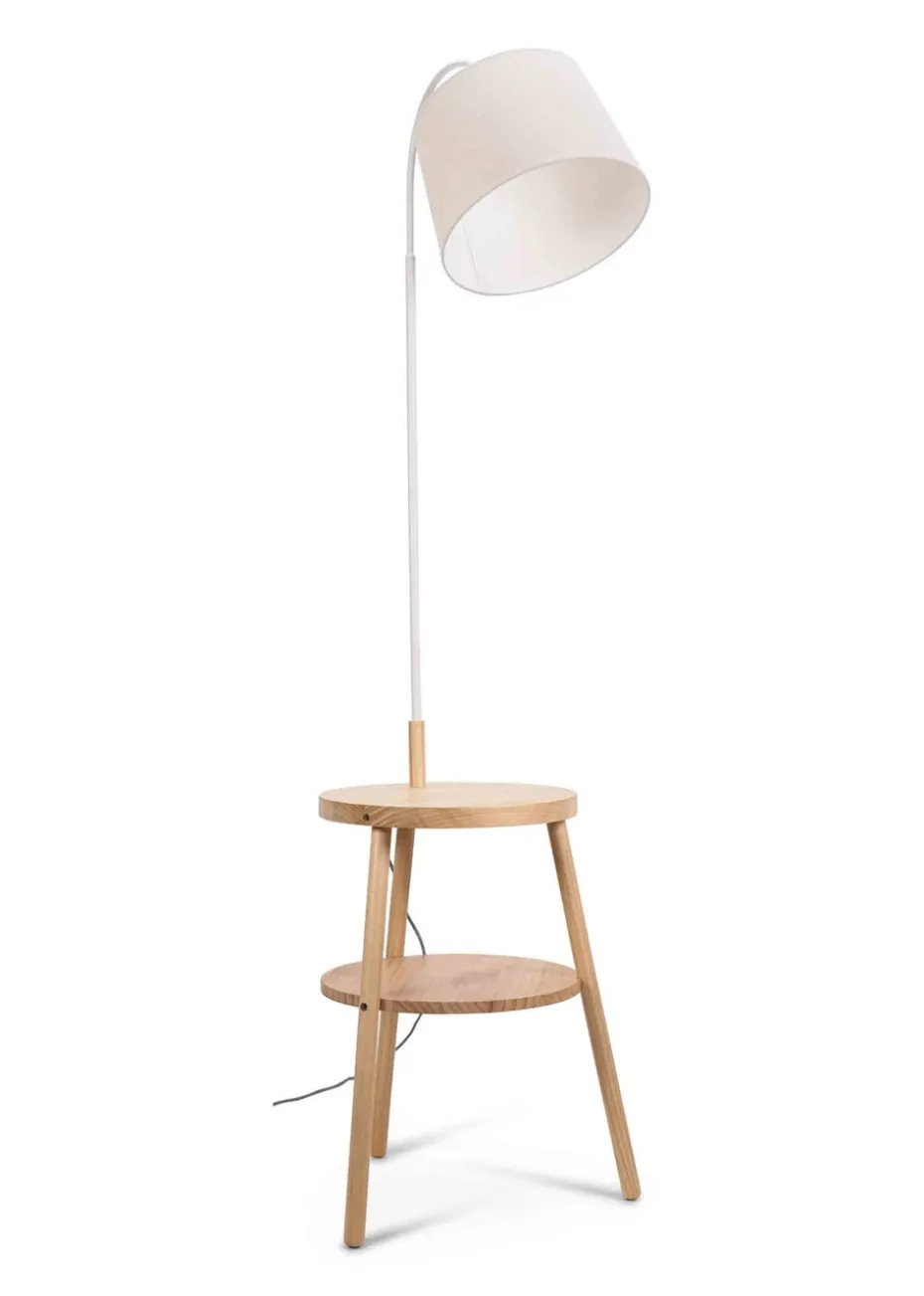 The Crowther shelved floor lamp in light wood is a combination of side table and arc floor lamp you didn’t know you needed. If you’re short on space or you just love double function pieces, it’s the one for you. With a two tiered side table you’ve got plenty of room for some decor and your brew. Requires bulb with E27 fitting