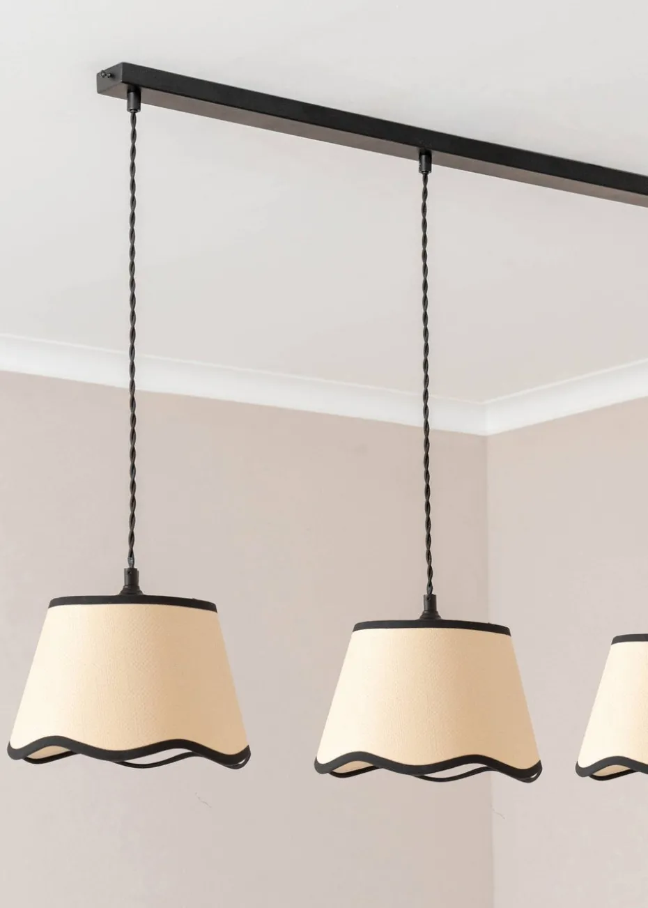 Transform your space with this matte black 3-drop bar E27 lamp holder, featuring 3 elegant Dutton scalloped shades, striking the perfect balance between modern industrial and vintage charm. Simply add 3 bulbs and watch as the magic unfolds. Whether you’re going for a contemporary loft feel or a cosy café aesthetic, this stylish lamp holder is sure to shine. Side effects include overwhelming admiration from visitors.