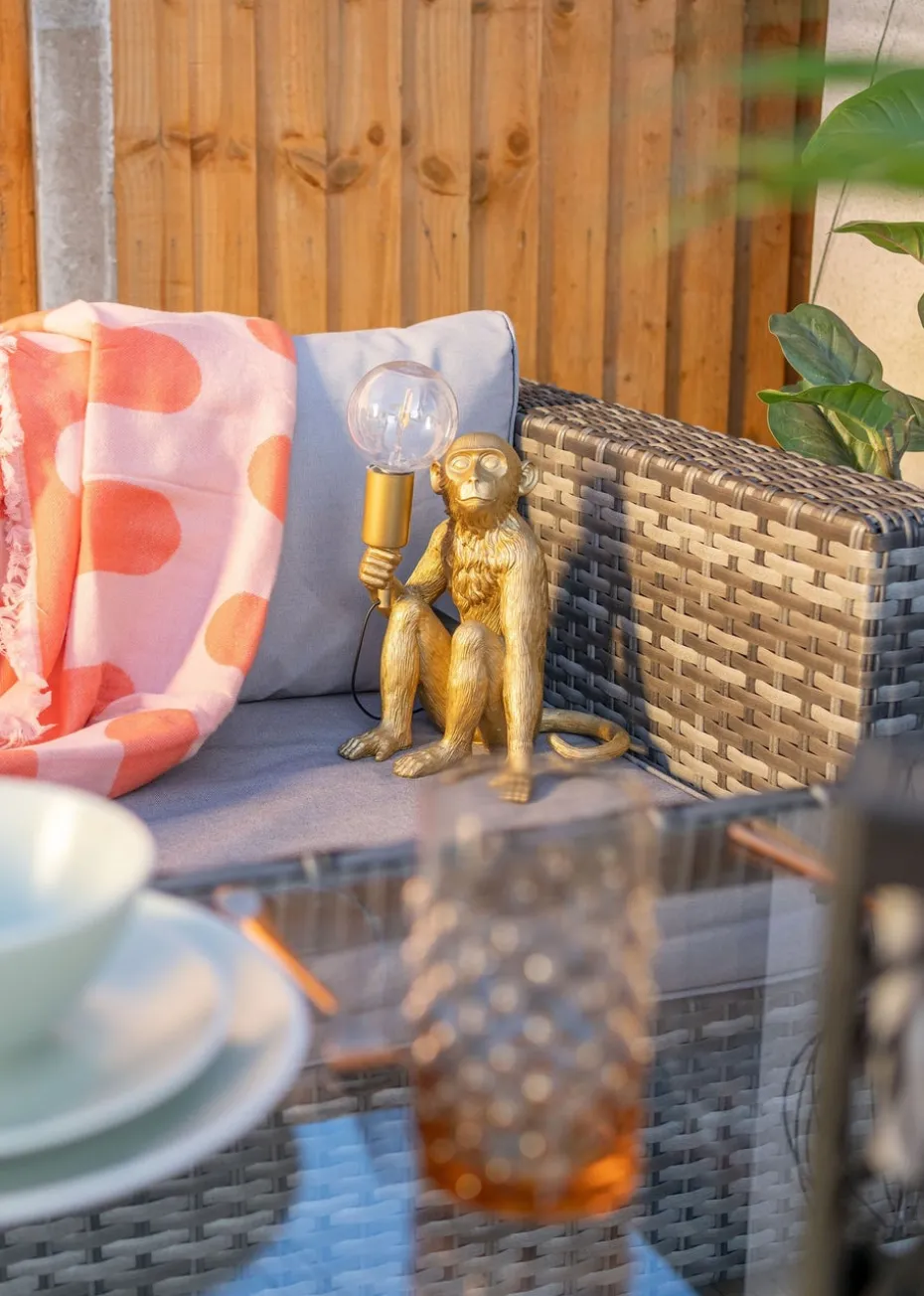 Welcome visitors to your house with this charming outdoor monkey light. This solar powered light comes in a gold finish and is detailed and realistic, and of course quirky and fun. Simply place in a sunlit area during the day, and watch it come to life as the sun sets. This is a lovely addition to any garden, patio, path, lawn or front door step. Charge for 6 hours during the day to provide up to 8 hours of lighting at night. Bulb required – N/A.