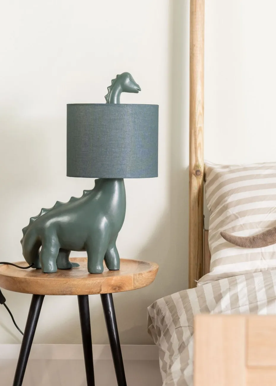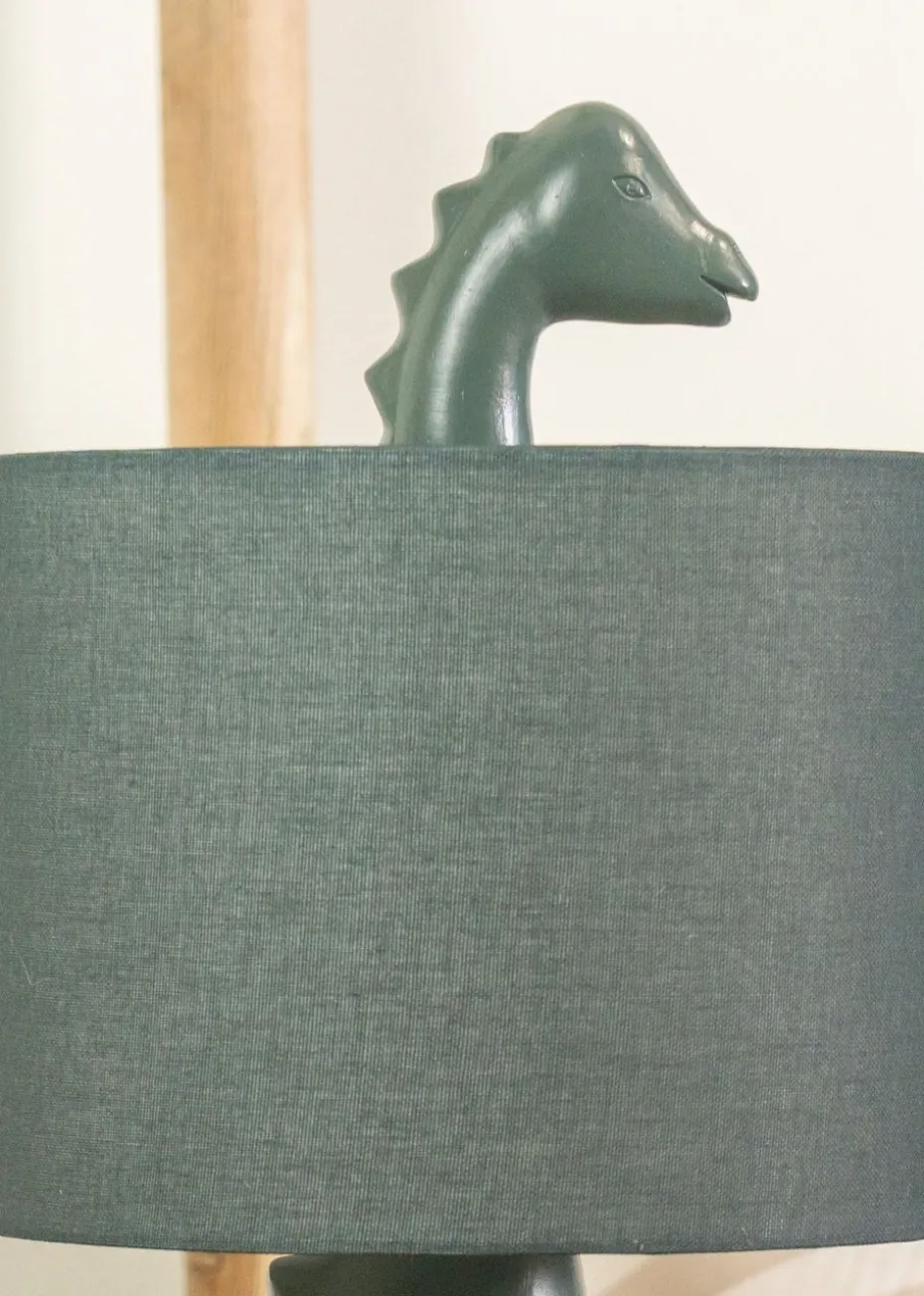 Brighten up your little ones space with this dinosaur shaped table lamp. The ceramic base comes in a pink or green finish with a matching braided flex and fabric drum shade. Give your child’s bedroom a pop of colour in a subtle and fun way. The in-line rocker switch provides convenient control, making it easy to illuminate your space. Help your child overcome the fear of darkness and create a comfortable sleep environment with this playful lamp. Requires 1 x LED 4W SES E14 bulb (not included).
