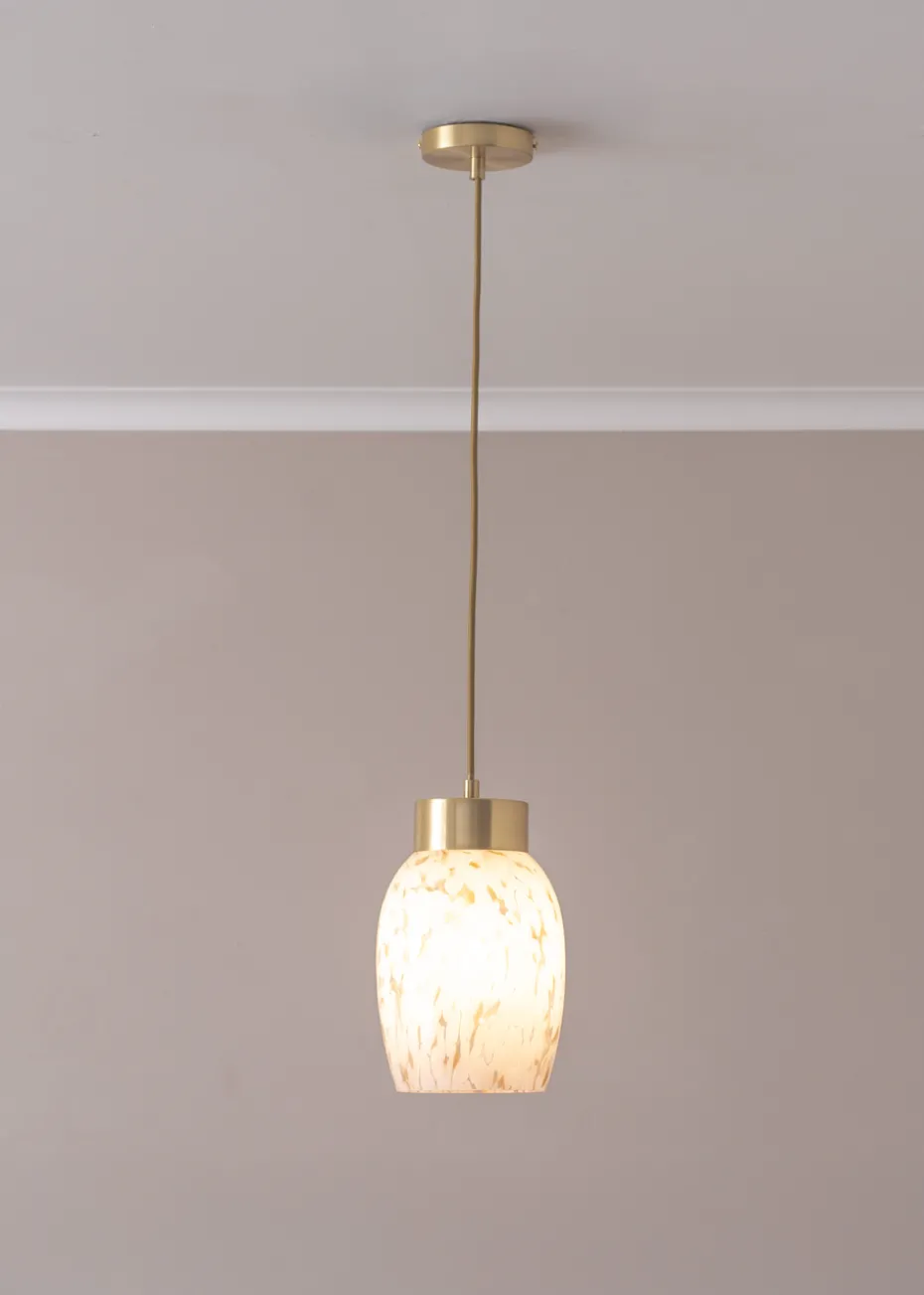 Time to celebrate your home décor with this brushed gold lamp holder ceiling light, complete with a stunning India confetti glass shade. The soft, cosy glow from the confetti pattern creates the ideal atmosphere, while the brushed gold finish adds a sprinkle of class. Whether you’re entertaining guests or enjoying a quiet cuppa, this light brings effortless charm to any space. Perfect for kitchens, dining areas, or anywhere you need a little extra shine.