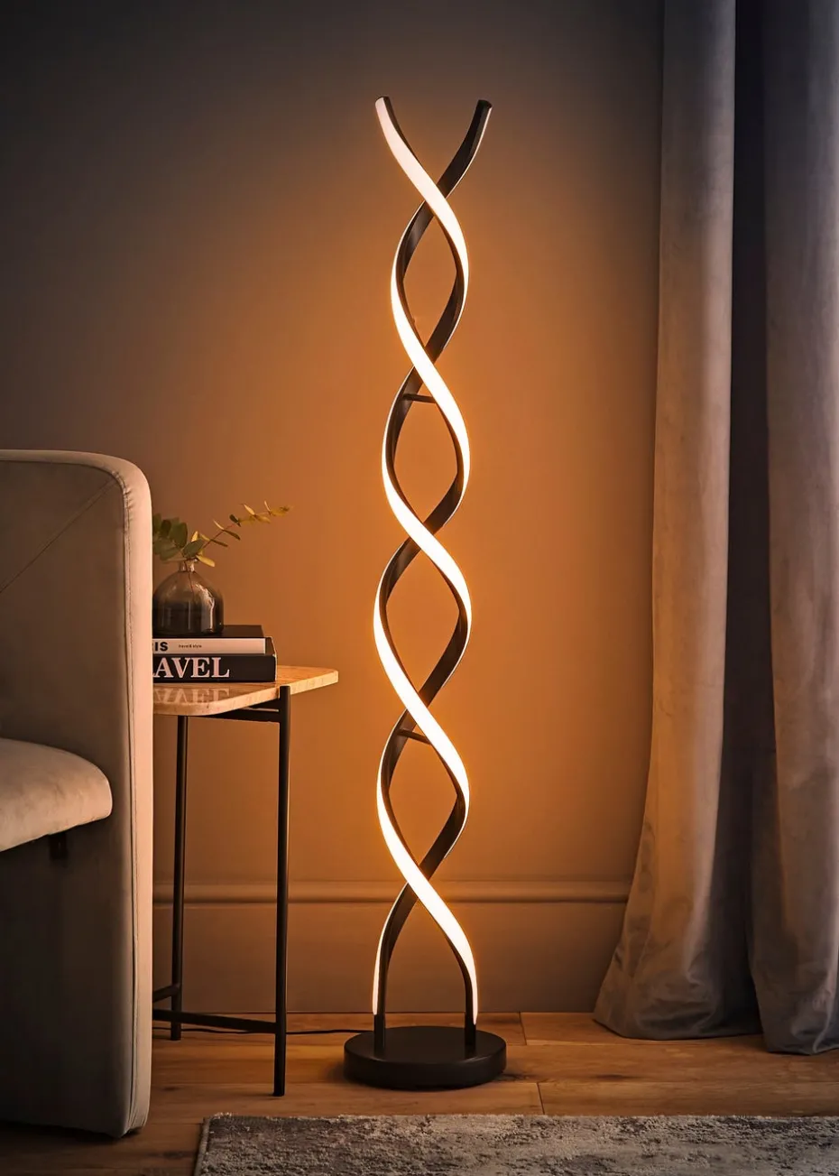 Lighten up your home in a versatile and environmentally friendly way with this LED integrated light. This floor lamp features a sleek double twist design and comes in a matt black finish. This futuristic light looks just as effective switched off as it does on, while giving off a warm yet vibrant ambience. This light is sure to be a showstopper that will brighten up your home.