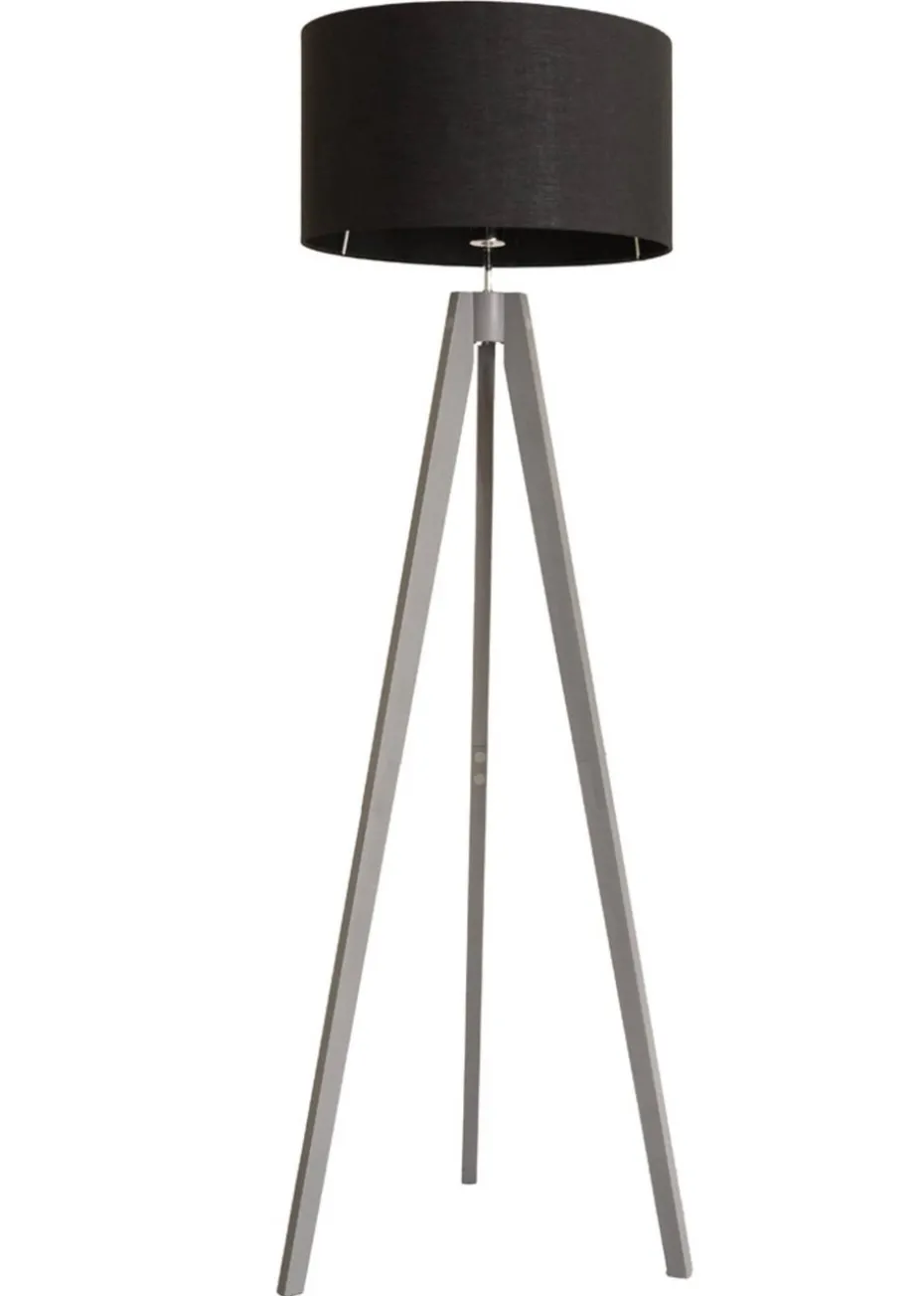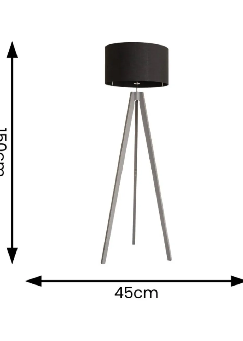 The Jackson tripod floor lamp in a painted grey wood finish is the perfect lamp base to add contemporary style to any space. Blending seamlessly into contemporary living rooms and bedrooms, the paired black shade creates a warm and cosy lighting effect.