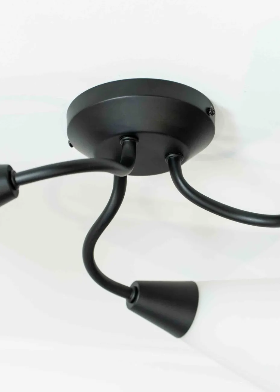 The Kristina three arm flush ceiling light in black is a versatile ceiling light that’s understated in design and perfectly over the top in glow power. Requires bulb with E14 fitting