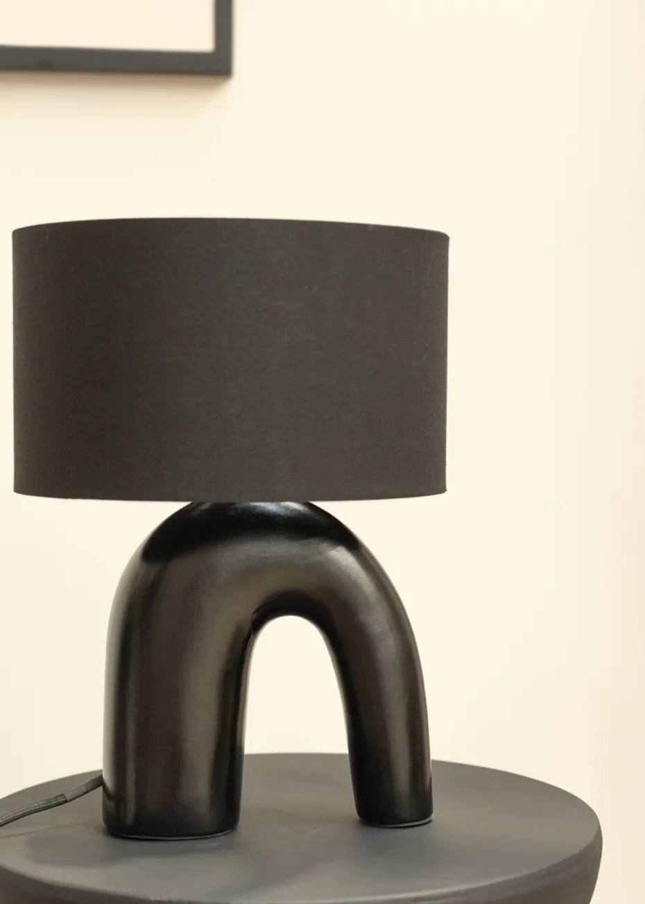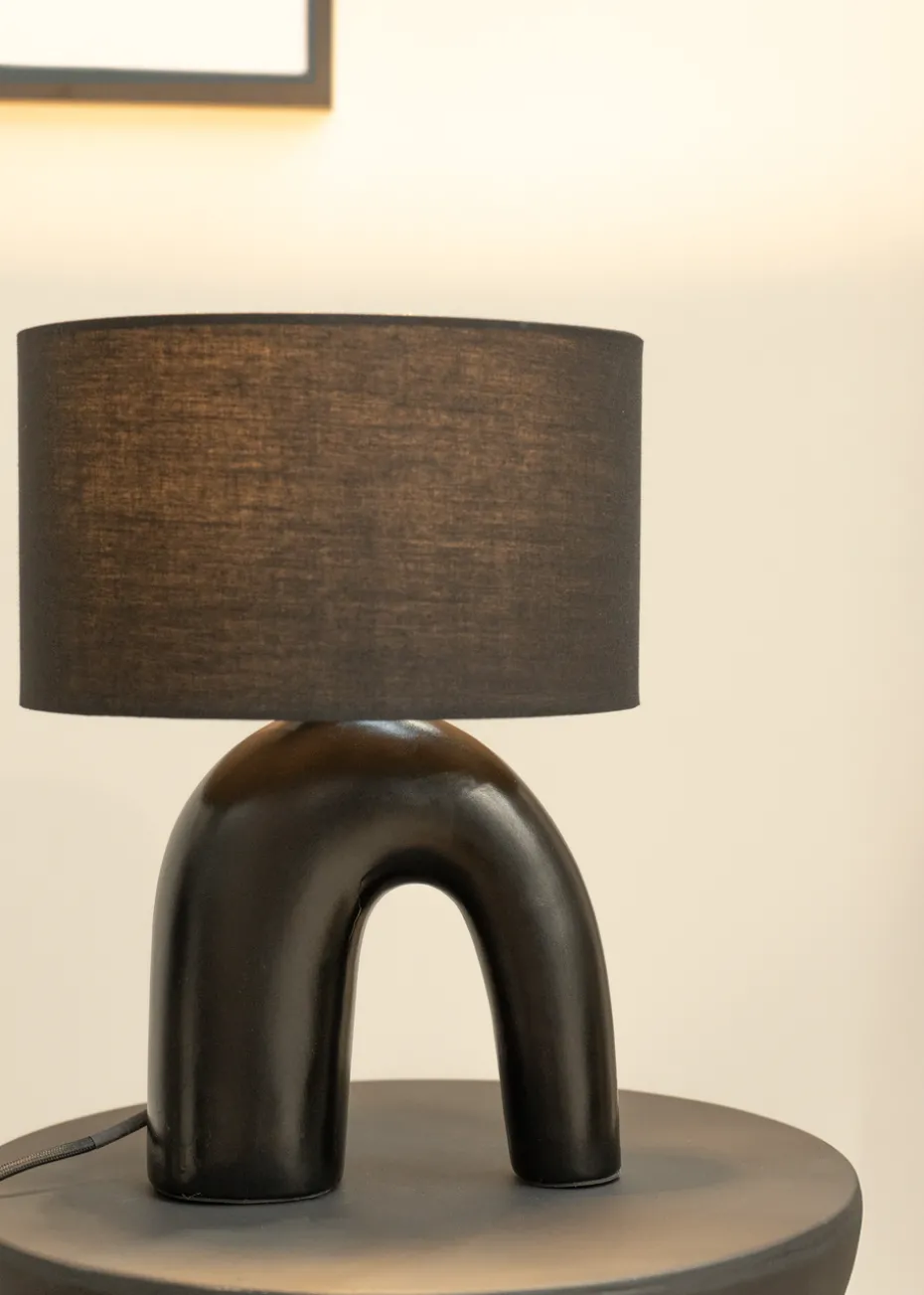 Introducing Lia, the table lamp with a curved sense of style! The bold black abstract arch base paired with a chic black fabric shade creates a modern, minimalist look that arches above the rest. Perfect for any room that needs a little illumination with personality, Lia will have your space glowing in no time. So, why settle for the ordinary when you can have a lamp that’s truly in the spotlight? Let Lia light the way to your home’s next stylish statement!