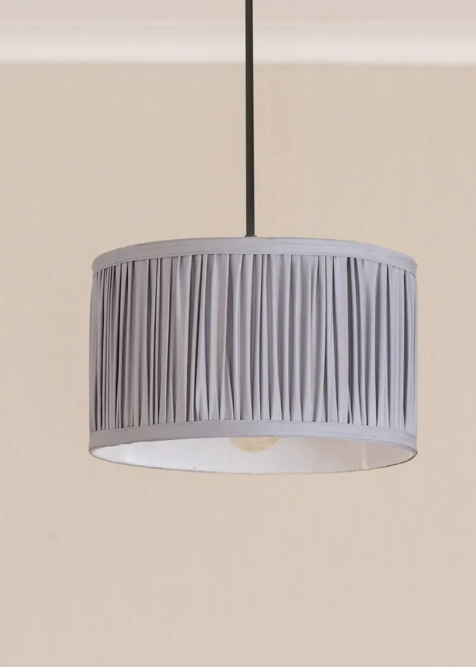 Practically perfect in every way, this small, pleated drum shade is the pendant your ceiling light has been crying out for. The gathered pleats give the shade a pleasing tactile texture and the faux silk fabric has a luxurious sheen. Effortlessly elegant, the Jess pendant shade fits into the quiet luxury trend without breaking a sweat. Available in 3 dusky pastel colours, pink, green, and blue, you can find a shade to match your colour scheme or mix things up a little.