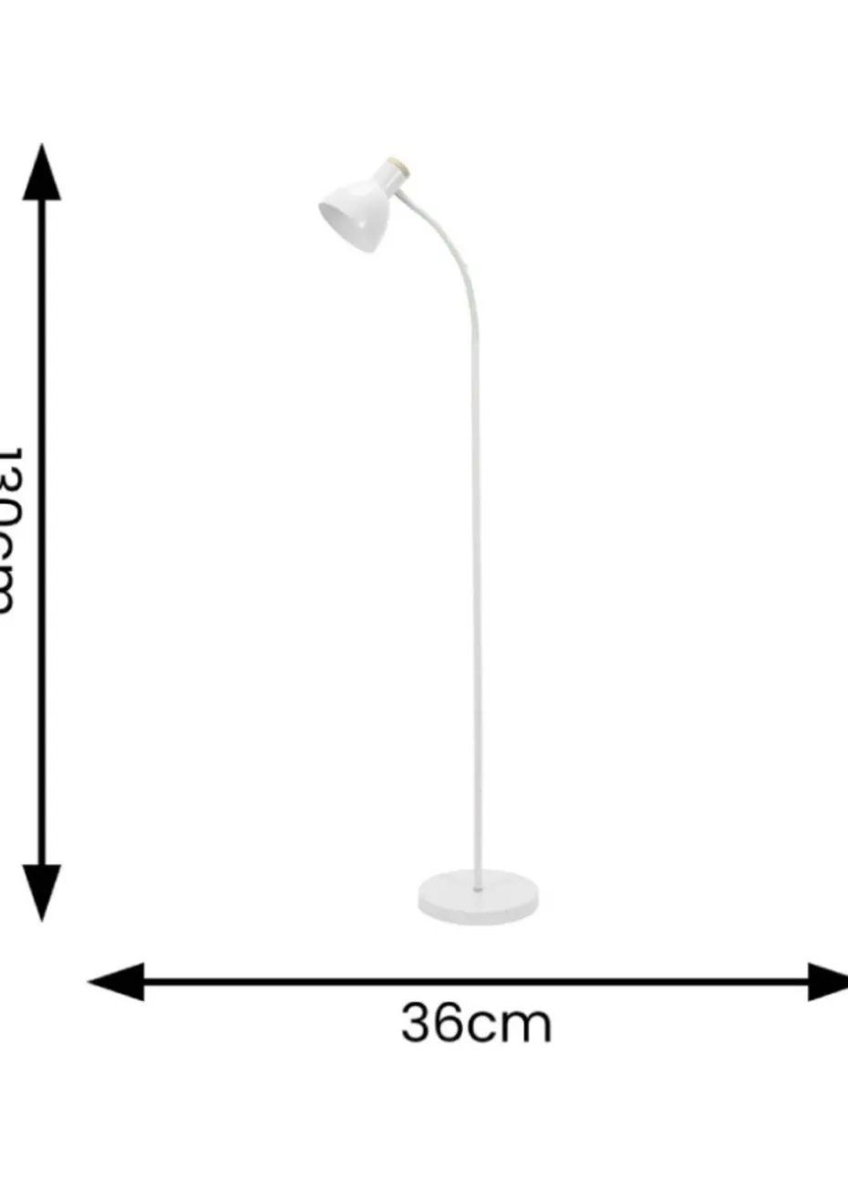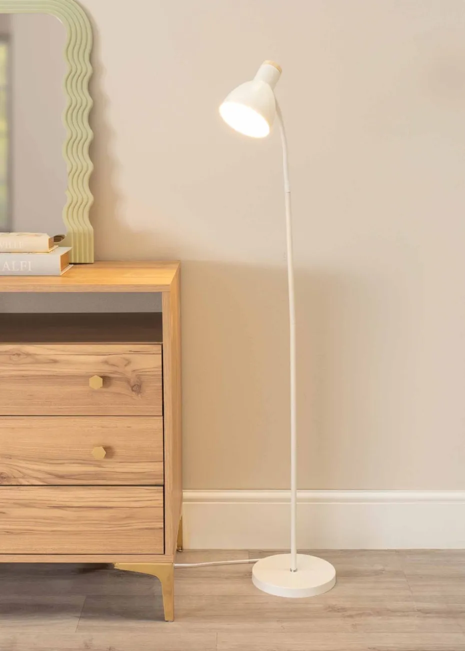 The Woody flexi neck floor lamp in white is the practical task lamp you need and the colourful, characterful one you want. Super versatile, thanks to its flexible neck, you can adjust the angle of the light so that whatever you want to highlight is perfectly illuminated. Painted in a clean and classic white, it has a round wooden base for that added Scandi vibe too. Requires bulb with E14 fitting