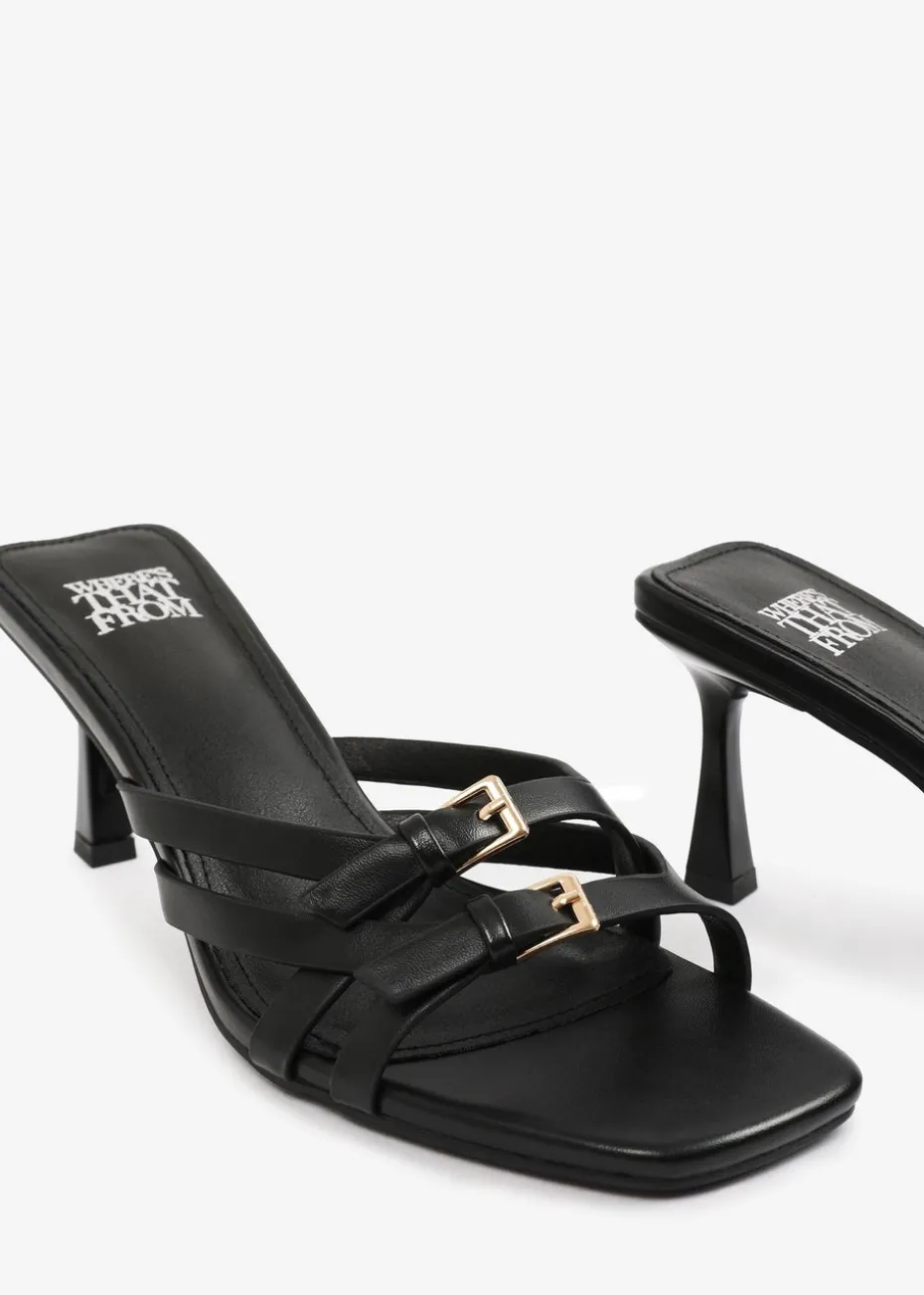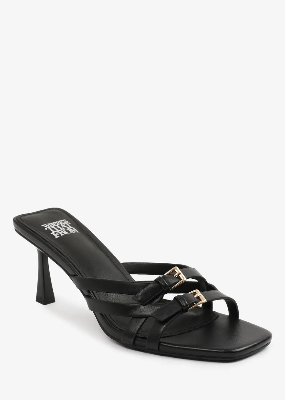 Where's That From Black PU Ariela Wide-Fit Cross-Over-Buckle Details Strap Heel