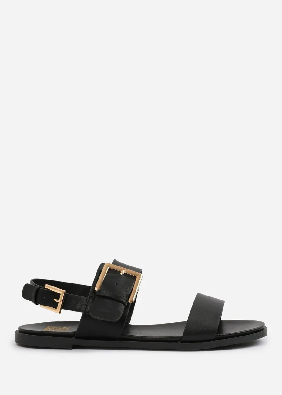 Where's That From Black PU Camilla Classic Flat Sandals