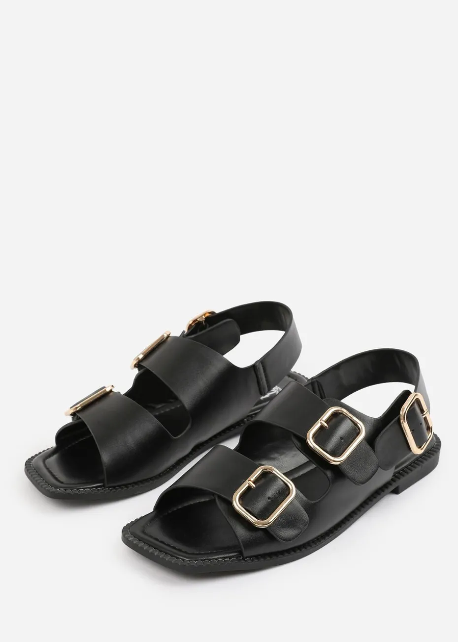 Where's That From Black PU Cher Flatform Sandal