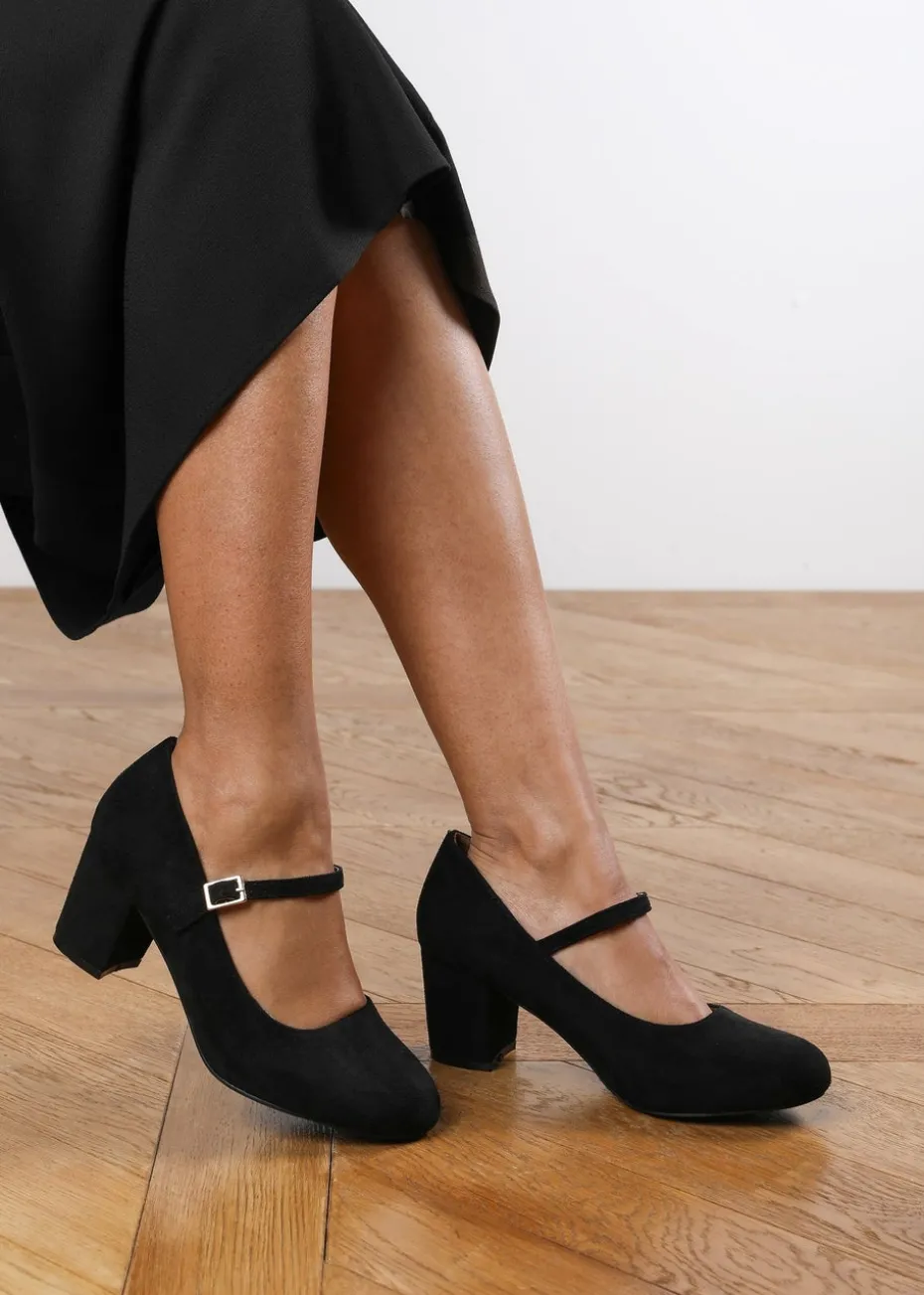 Where's That From Black Suede Effie Block Heel Pumps