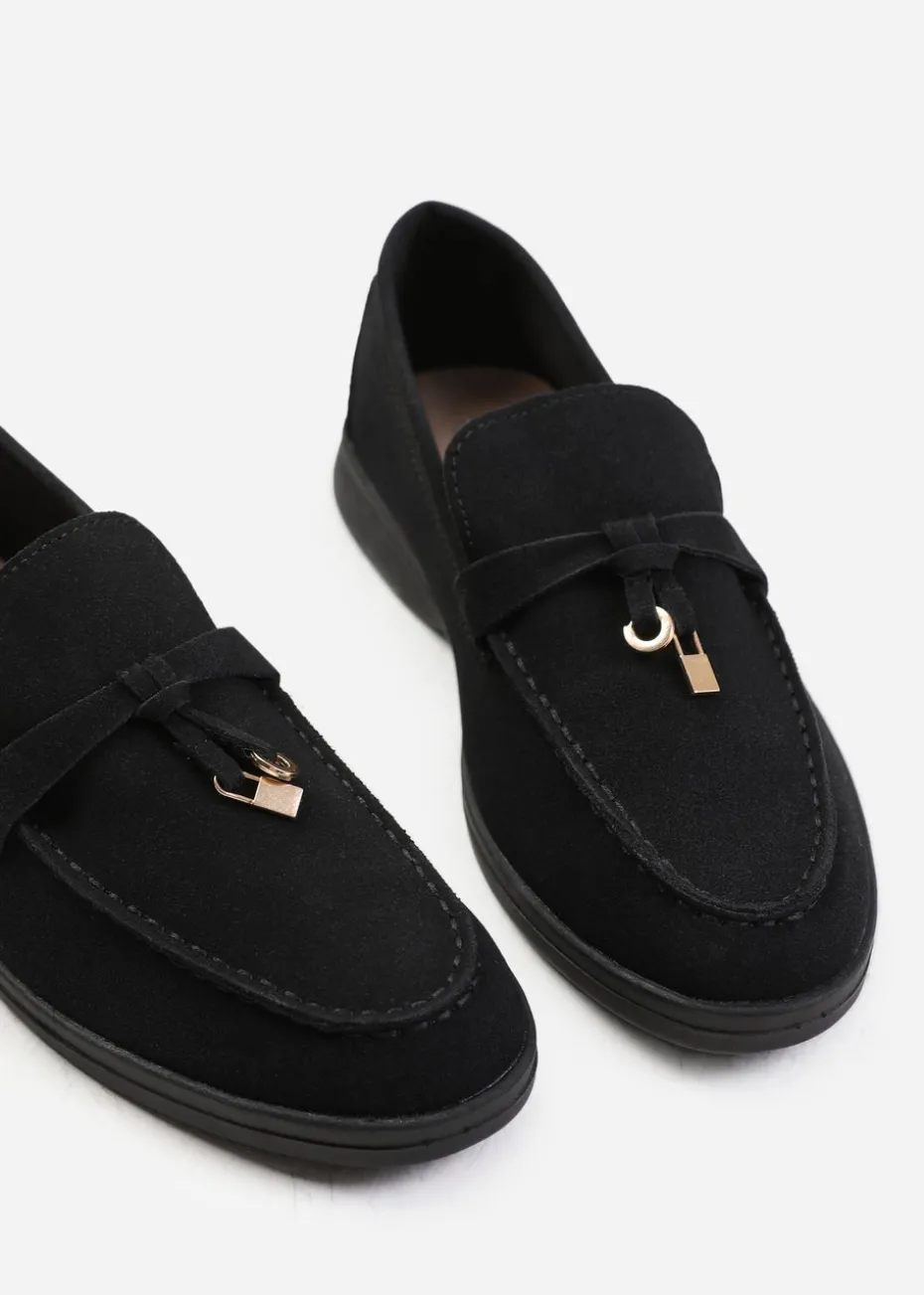 Where's That From Black Suede Pegasus Wide-Fit Slip On Loafers