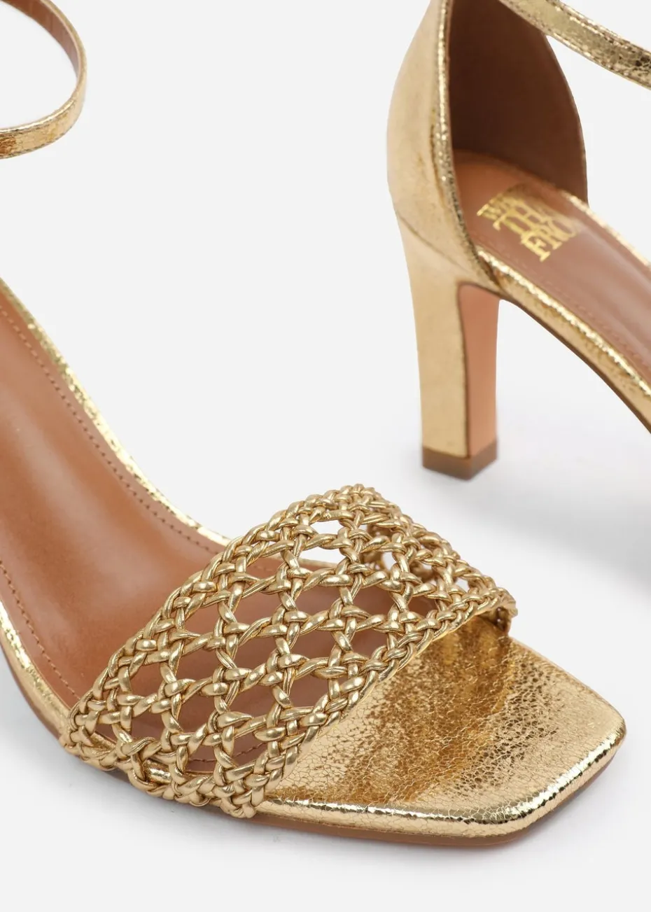 Where's That From Gold PU Naia Wide-Fit Strappy Block Heel