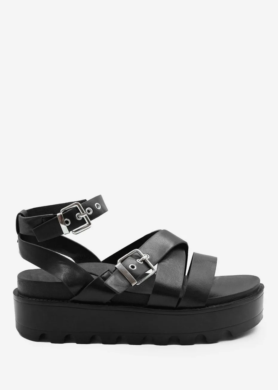Where's That From Layla Black Wide-Fit Buckle Strap Platform Sandals