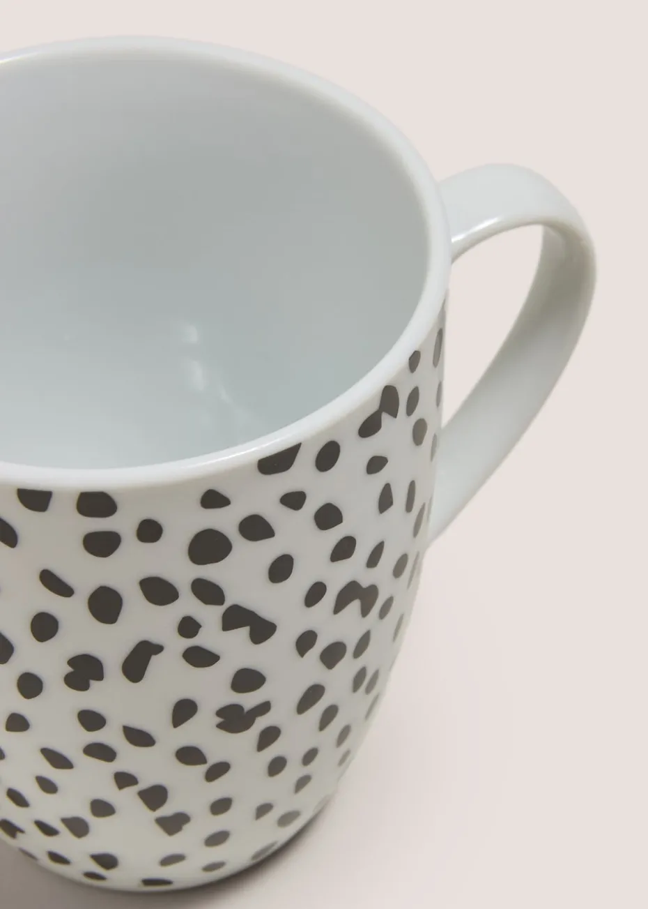 This elegant white and black spot mug adds a touch of sophistication to everyday moments. With its smooth, glossy finish and bold black spots, this mug is a visual delight that elevates any kitchen or dining space. Made from durable ceramic, it can withstand the rigours of daily use, ensuring its longevity in your home.