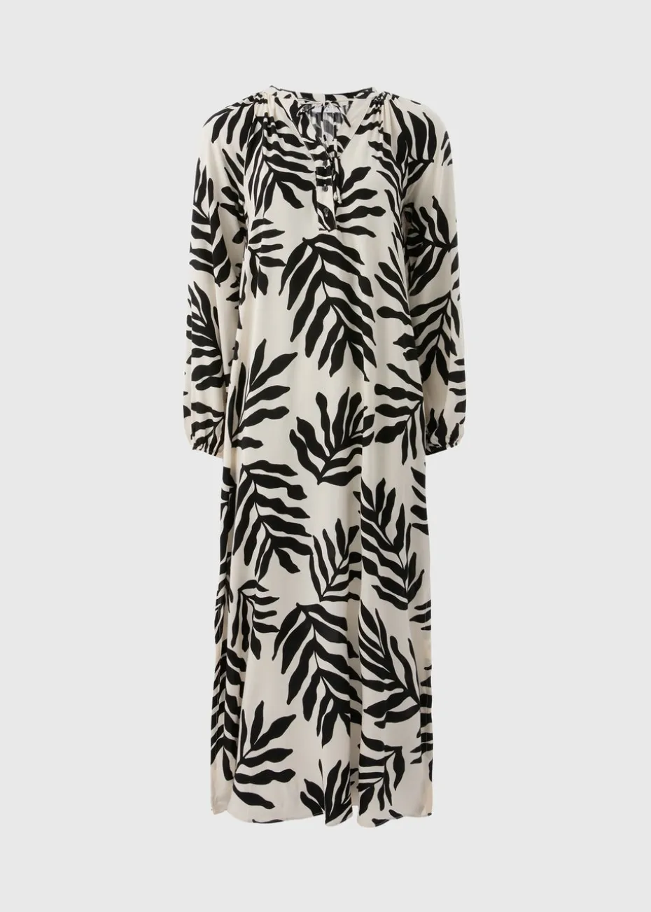 Make a statement with the White Monochrome Leaf Print Tunic Dress, designed for a chic yet relaxed look. Featuring a monochrome leaf print, this dress blends elegance with everyday comfort, making it perfect for day-to-night styling. Ideal for holidays, weekend outings, or casual dinners.