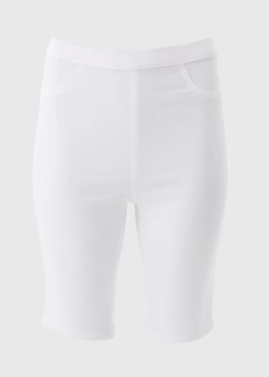 Look effortlessly stylish and feel fantastically comfy with our White Rosie Knee Length shorts! Crafted from a resilient, cotton rich material, these shorts ensure long-lasting wear and easy maintenance – perfect for your everyday adventures.