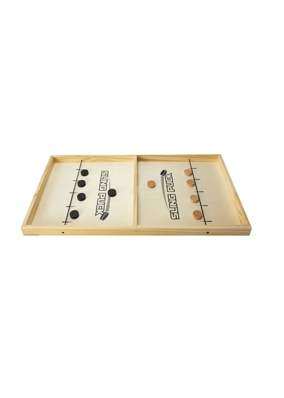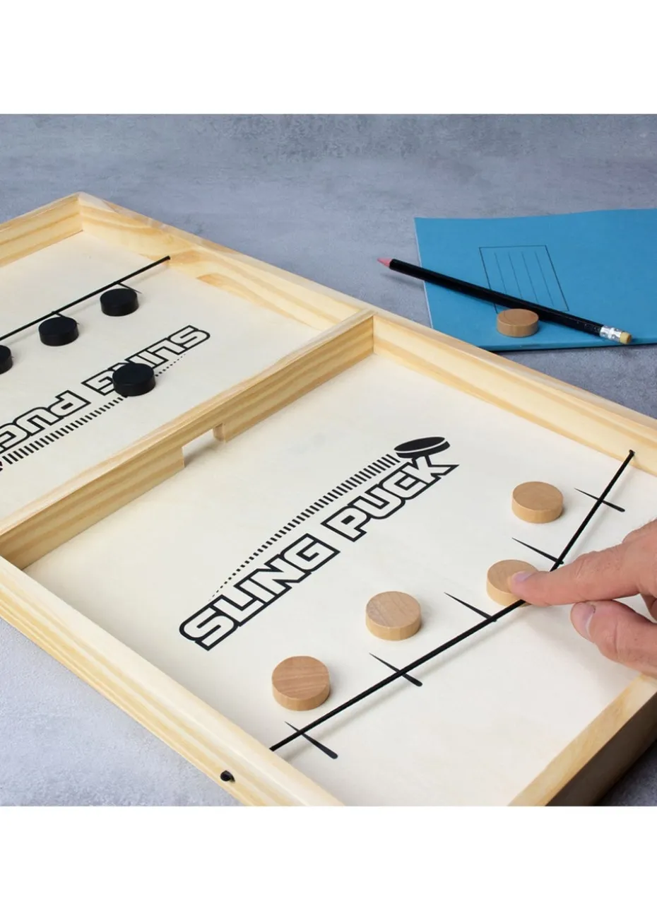 Introducing the #winning Sling Puck Table Top Game! This wooden rebound sling puck game is all about excitement at your fingertips. Race to clear the pucks from your side first to claim victory, but keep your eyes peeled—your opponent is gunning for the same prize! The rules are simple, but the thrill is off the charts. Crafted from high-quality wood, this game promises hours of entertainment for older kids and adults alike. Feel the adrenaline as you skillfully slide the pucks and devise strategies to outsmart your opponent. Its compact and portable design makes it perfect for family gatherings, parties, or game nights with friends. Elevate your gaming collection with the #winning Sling Puck Table Top Game for endless fun and friendly competition. Get ready for hours of laughter and unforgettable moments!