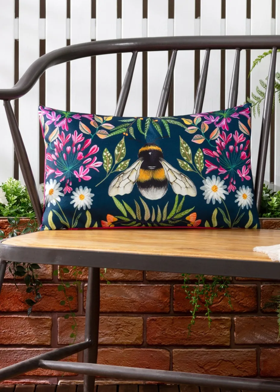 Wylder Nature House of Bloom Zinnia Bee Outdoor Filled Cushion (30cm x 50cm x 8cm)