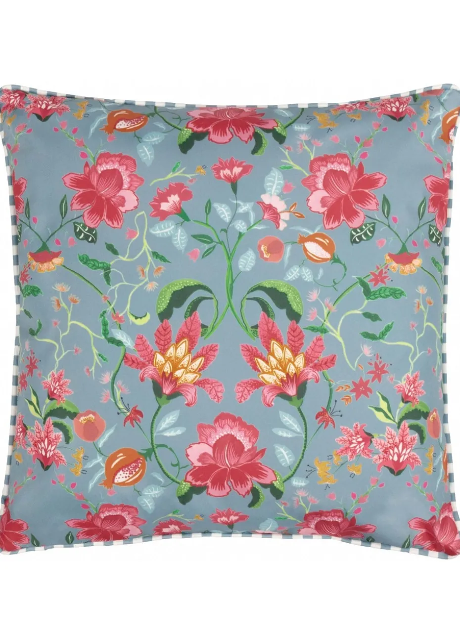 Add a touch of organic charm to your outdoor space with the Claudia Piped Floral Outdoor Cushion. This elegant accessory boasts statement hand-painted flowers that delicately intertwine, exuding a vibrant summer essence. The cushion features a heritage-striped piped trim and a matching reverse, offering a classic and sophisticated finish. Designed for year-round enjoyment, its water-resistant fabric ensures durability against the elements. Perfect for those who treasure the beauty of modern country interiors and have an appreciation for print and pattern, the Claudia cushion blends natural allure with timeless elegance.