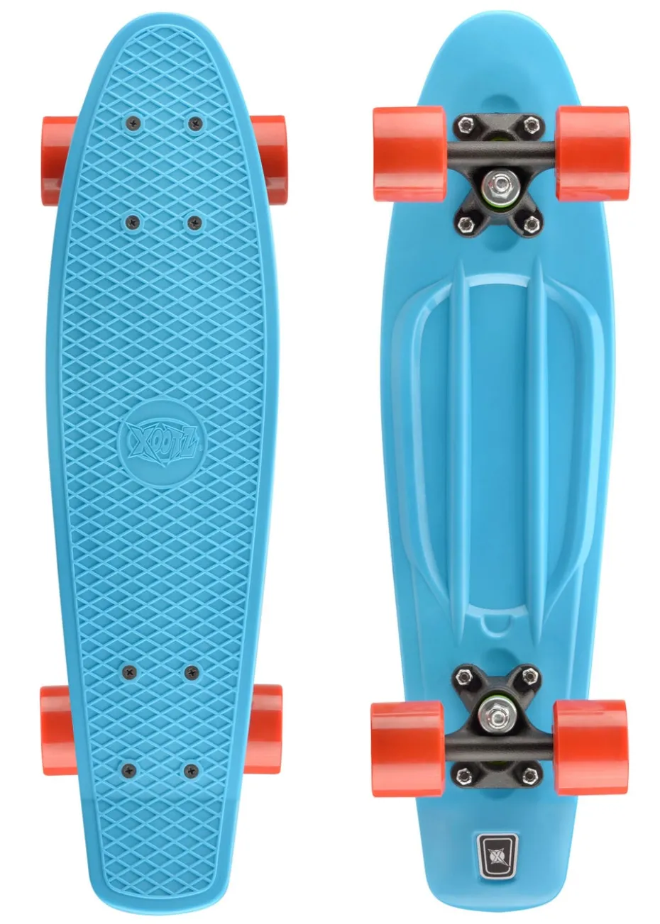 Designed with street cruising in mind, the Xootz Retro Plastic Skateboard comes in a range of cool colourways. This skateboard is an ideal size for you little ones looking to learn new skills and tricks on a board. With a stable and secure deck and carbon ABEC-5 bearings providing a safe and smooth ride. The large, soft wheels are ideal for beginners too as they easily glide over bumps on the road. Thanks to the compact size of this single kick deck, this board is convenient to transport and carry with you. Dimensions: 56.5cm x 11.4cm x 15.7cm