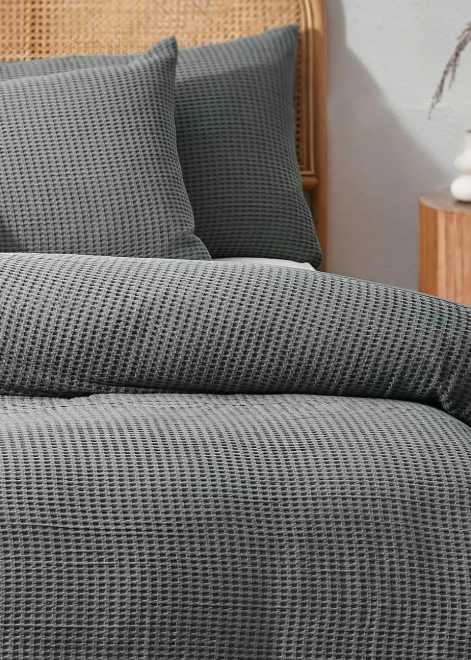 A modern classic ideal for those who appreciate the relaxed living aesthetic. The Chunky Waffle duvet cover set is made of premium cotton. Its soft, breathable fabric provides a comfortable night’s sleep while also adding a sophisticated look to your bedroom. OEKO-TEX® certifies this product, showing it has been sustainably made.