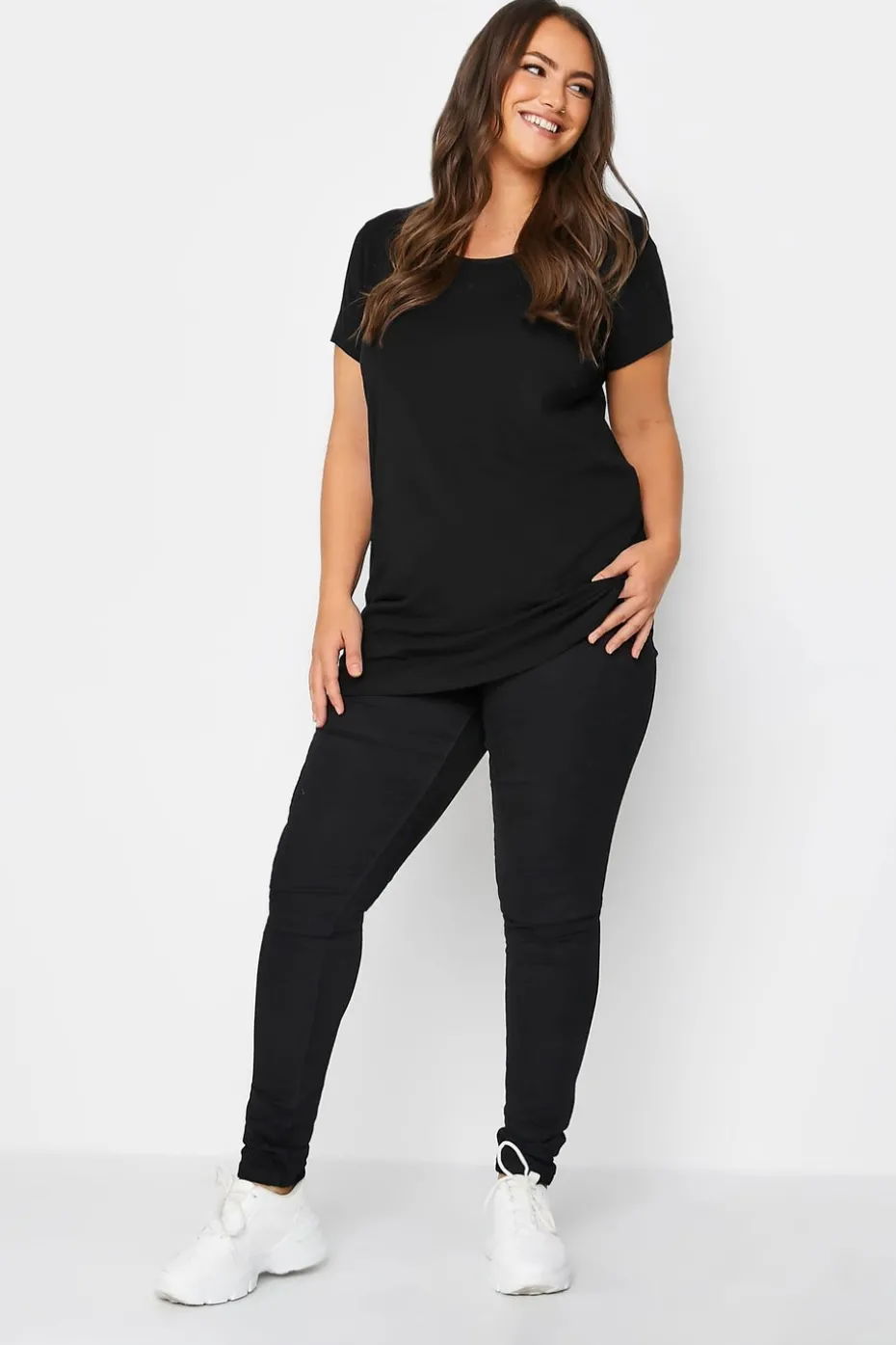 No wardrobe is complete without these base layer tees. Made from a comfortable cotton blend fabric, these t-shirts feature a crew neckline, short sleeves and are complete with a longline design. Mix and match these tops with your favourite denim for everyday looks you can rely on Model is 5′ 9.5″ / 176.53 cm and size UK 16/EU 44.