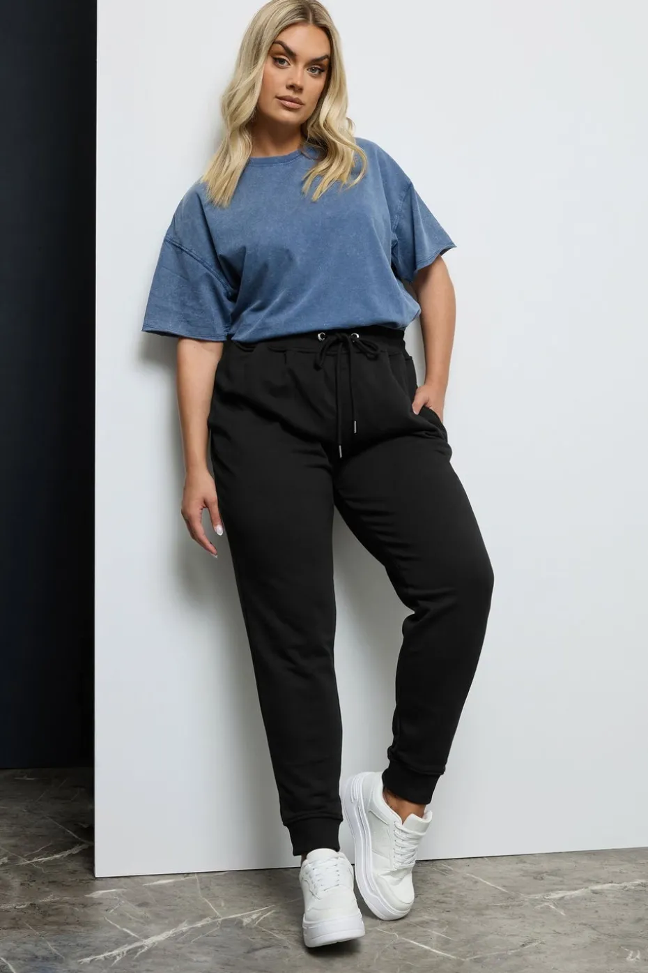 Whether you’re hitting the gym or lounging around at home, be sure to do it in style with these Yours Curve joggers. They feature a comfortable adjustable elasticated waist, two side pockets, and stretchy cuffed ankles. Pair with any t-shirt and trainers for the ultimate casual look. Model is 5′ 9.5″ / 176.53 cm and size UK 16/EU 44.