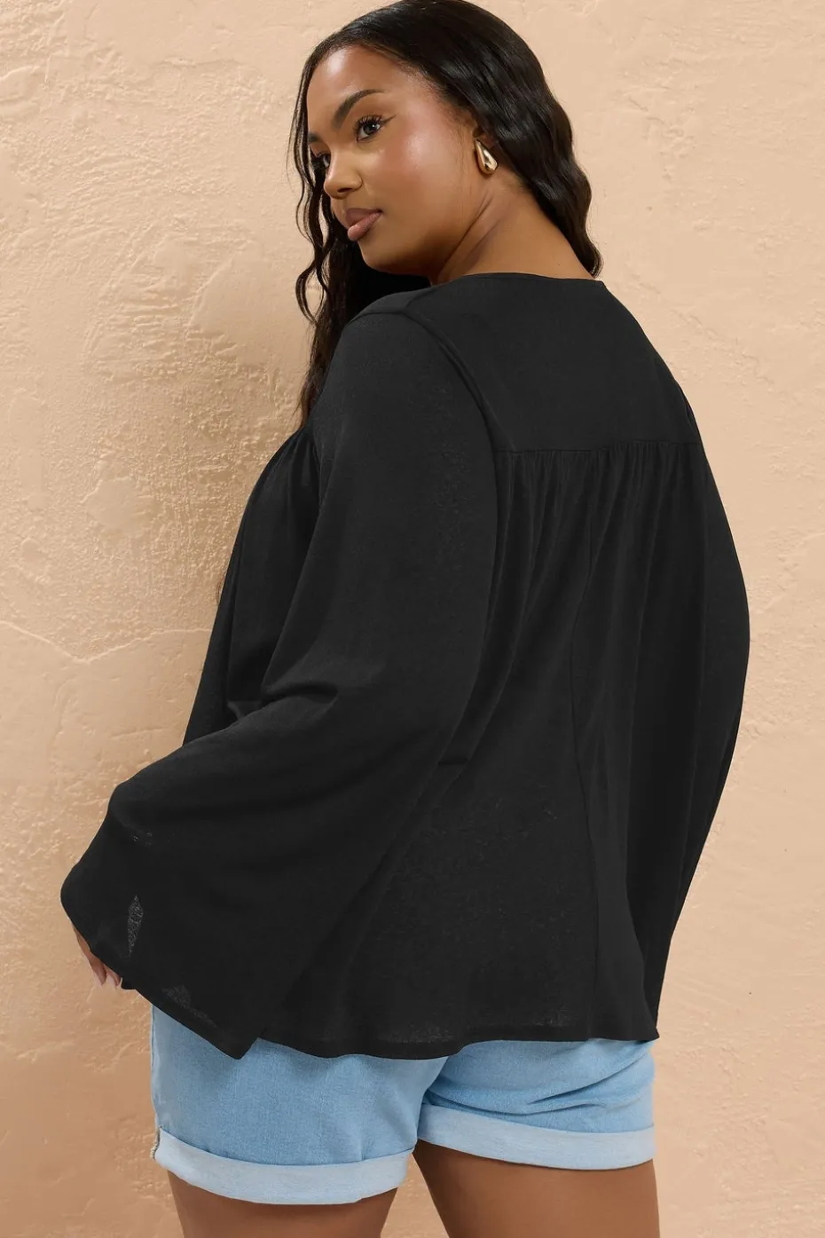 Be the first to review “Yours Curve Black Lightweight Tie Front Top” Cancel reply
