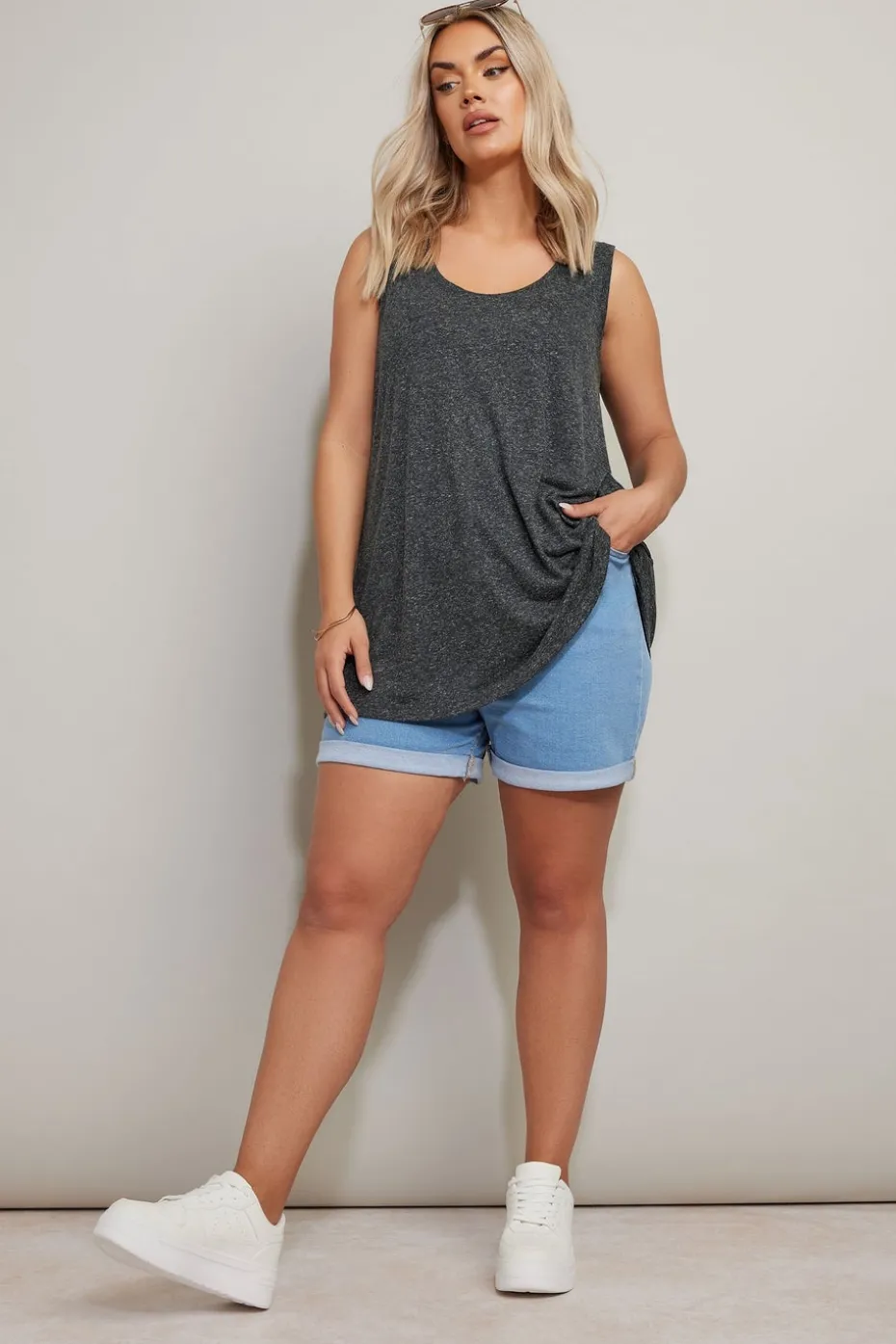 Prepare for summer in style with this new-in linen vest top Made from a soft woven fabric, it features a sleeveless look and a scoop neckline. Simply style with trousers and sandals for a casual everyday look you can rely on Model is 5′ 9.5″ / 176.53 cm and size UK 16/EU 44.