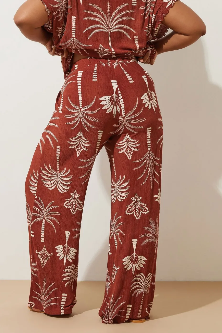 Be the first to review “Yours Curve Brown Palm Print Plisse Wide Leg Trousers” Cancel reply