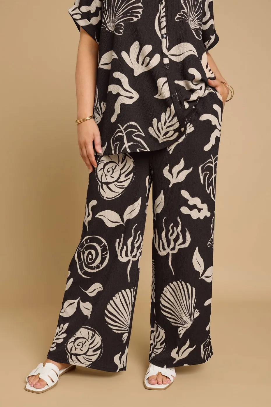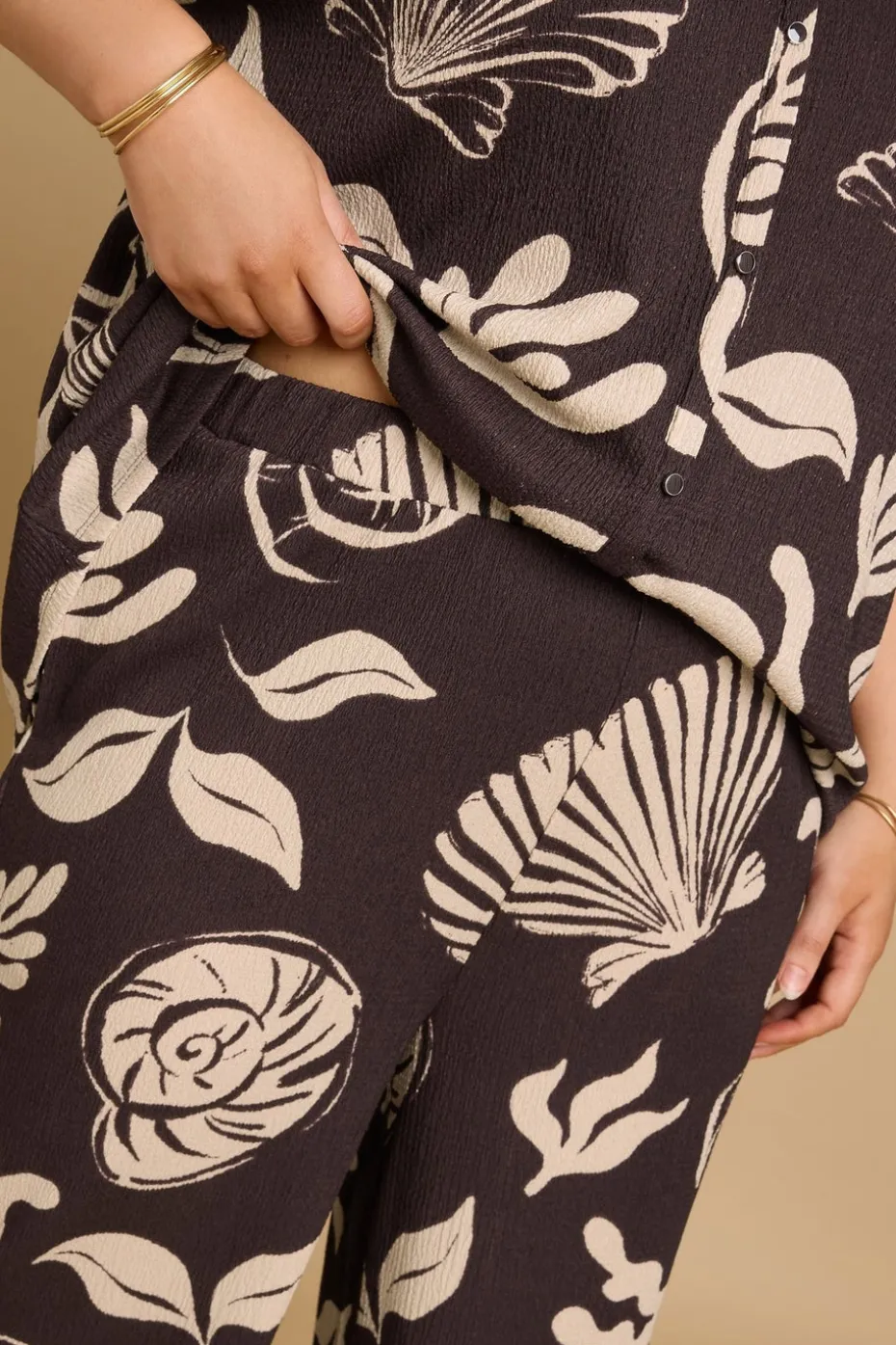 Be the first to review “Yours Curve Brown Seashell Print Textured Wide Leg Trousers” Cancel reply