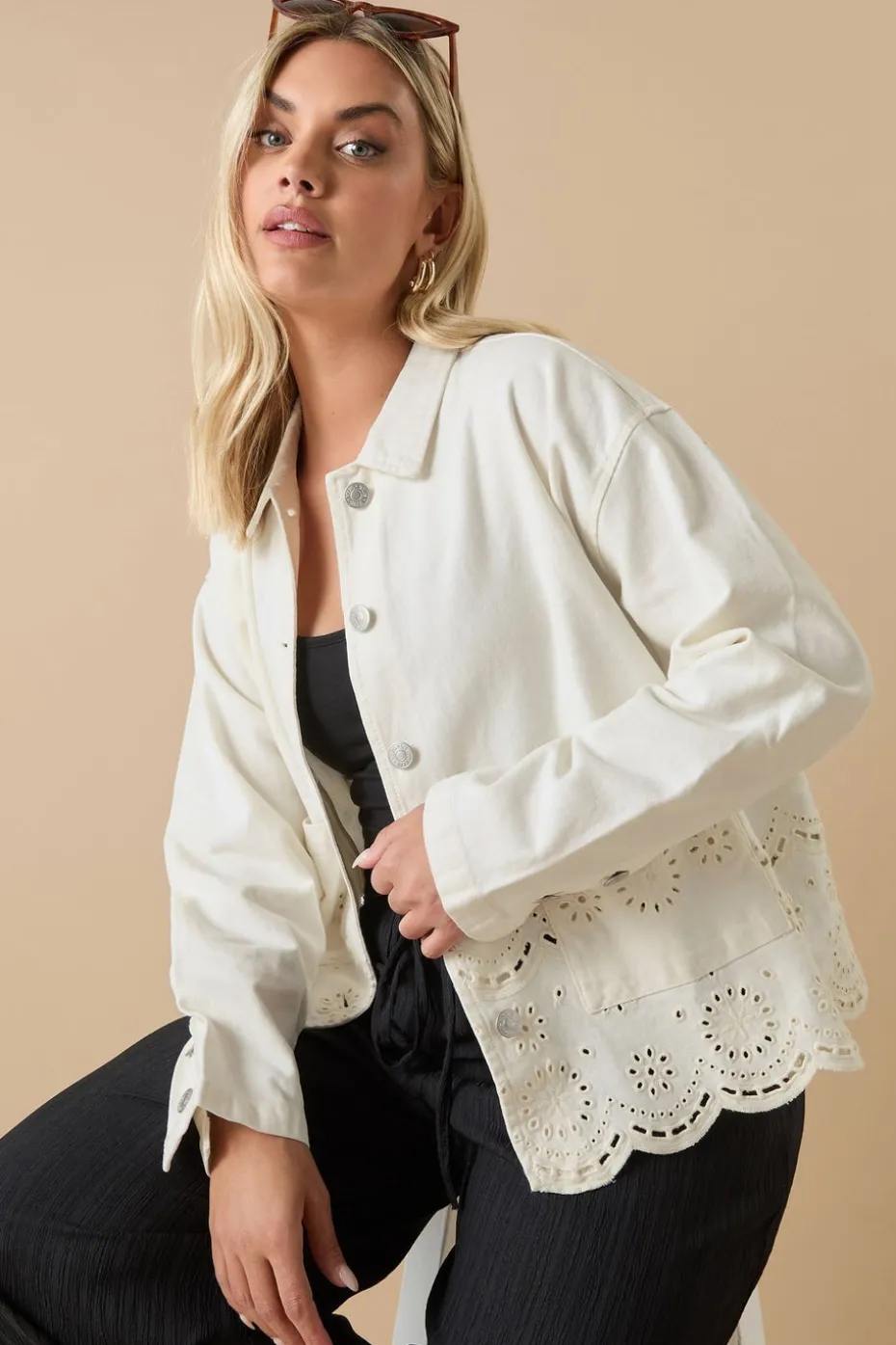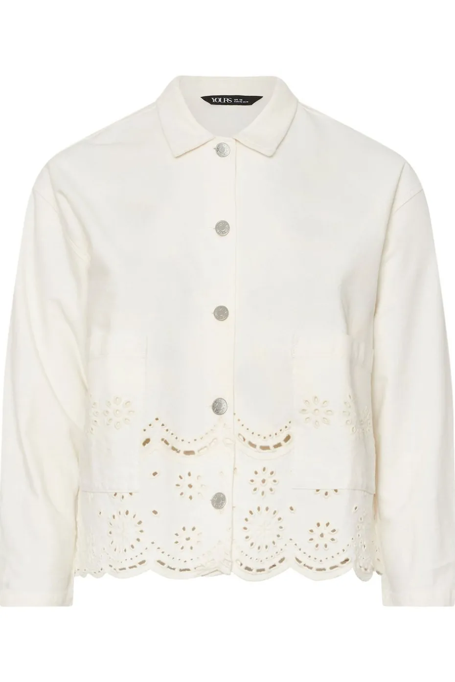 Yours Curve Ivory White Broderie Anglaise Twill Shacket