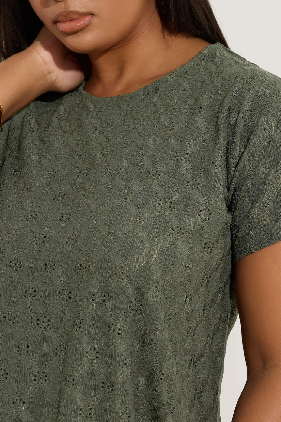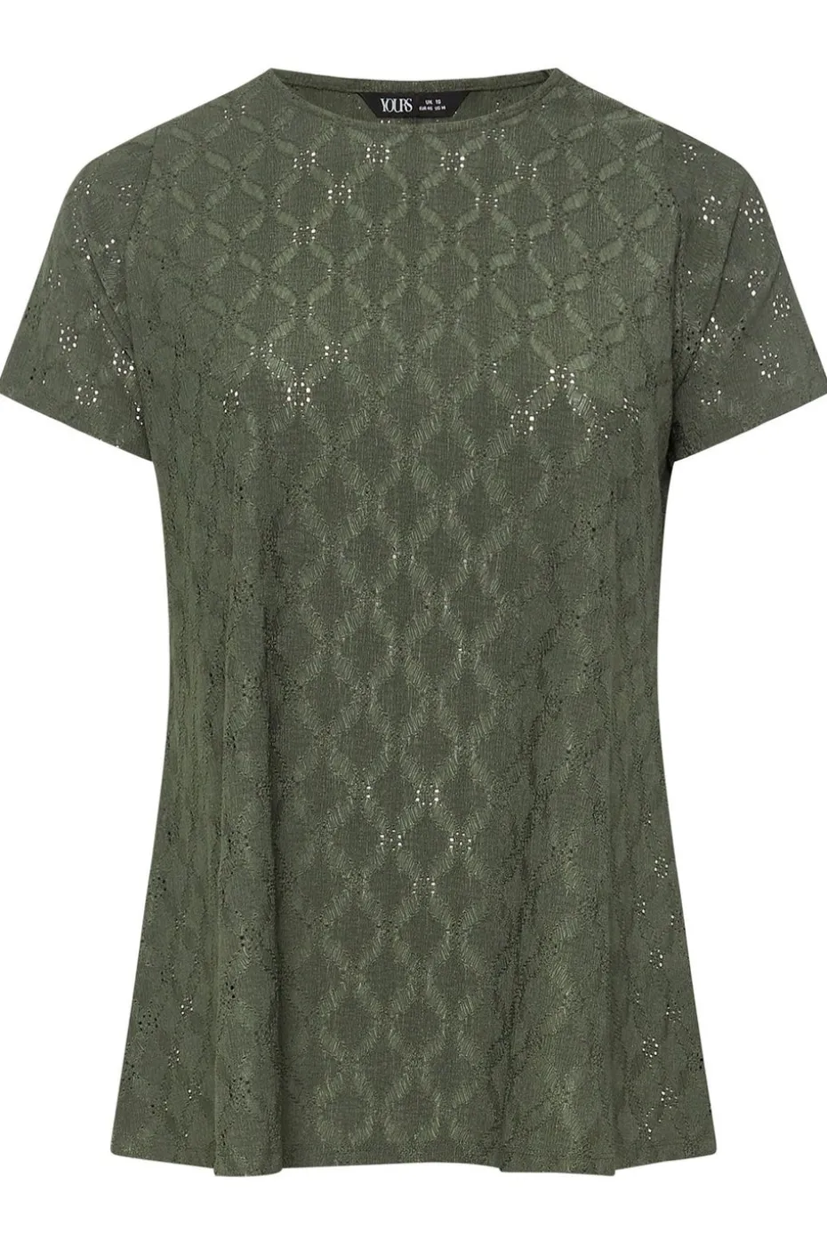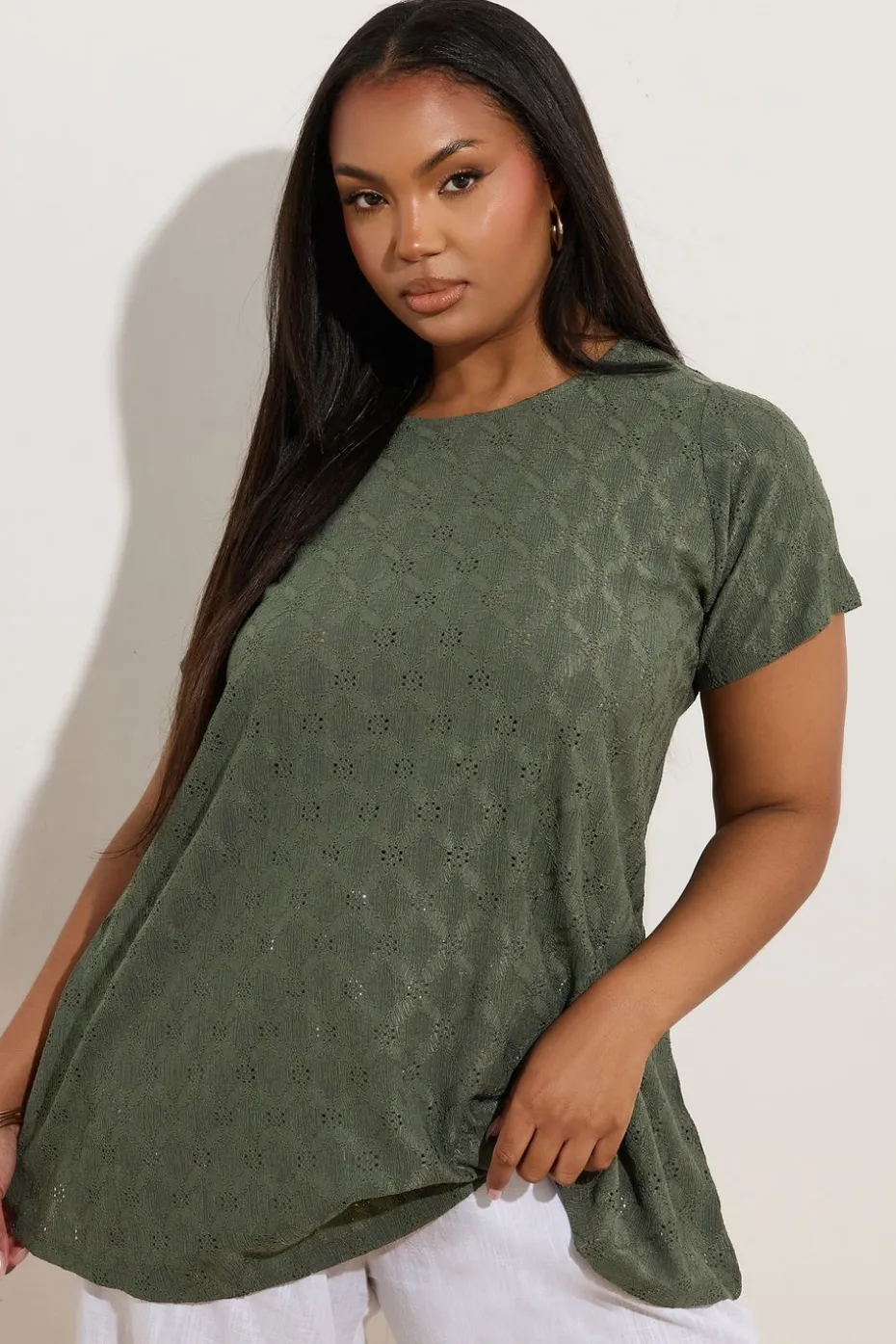 Be the first to review “Yours Curve Khaki Green Broderie Anglaise Textured Swing Top” Cancel reply