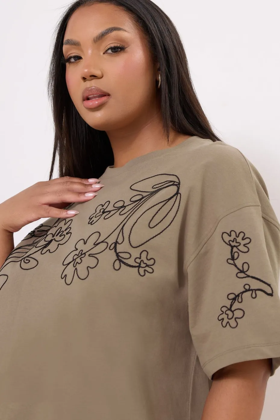 Be the first to review “Yours Curve Mocha Brown Floral Embroidered Oversized T-Shirt” Cancel reply