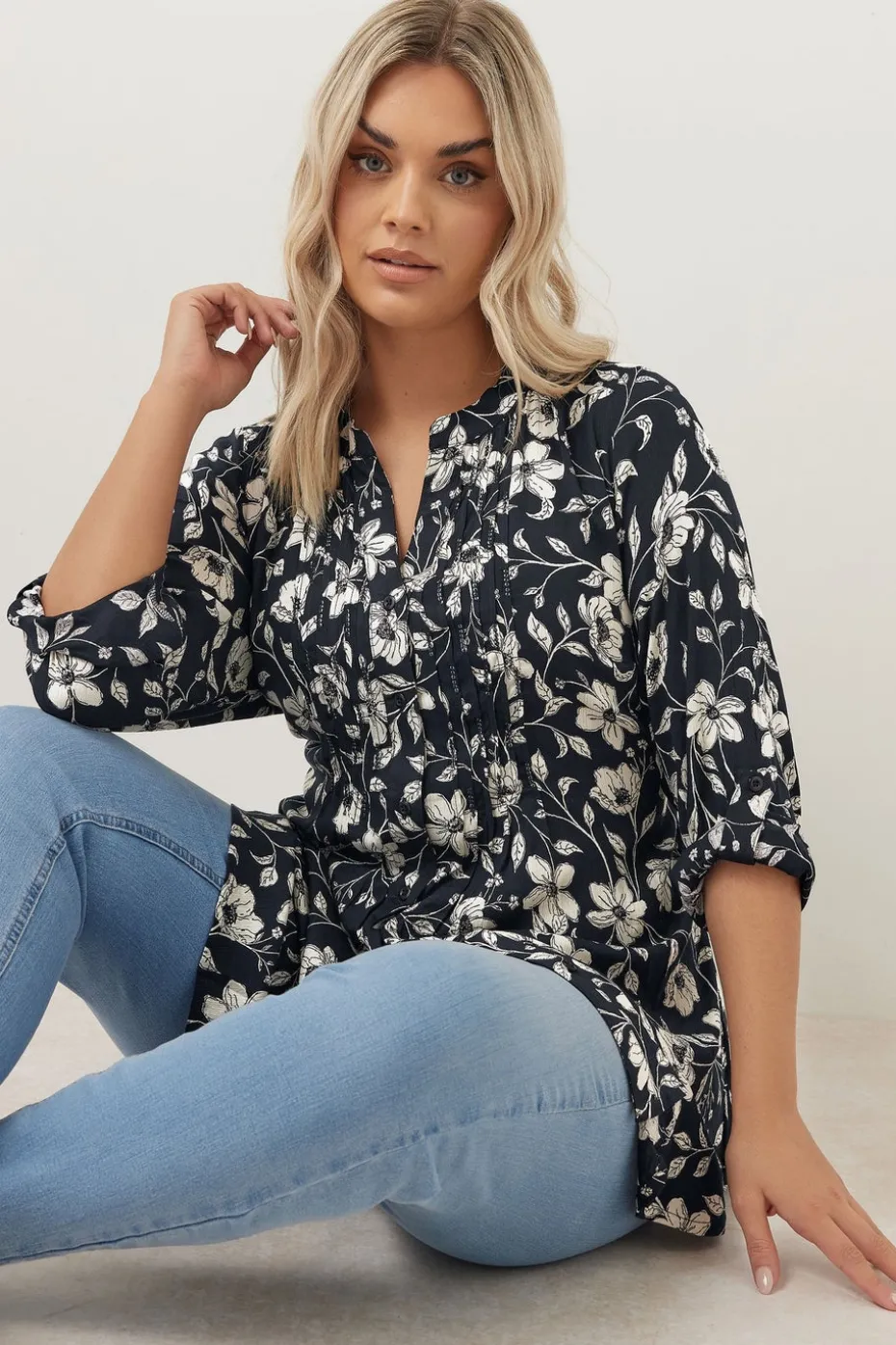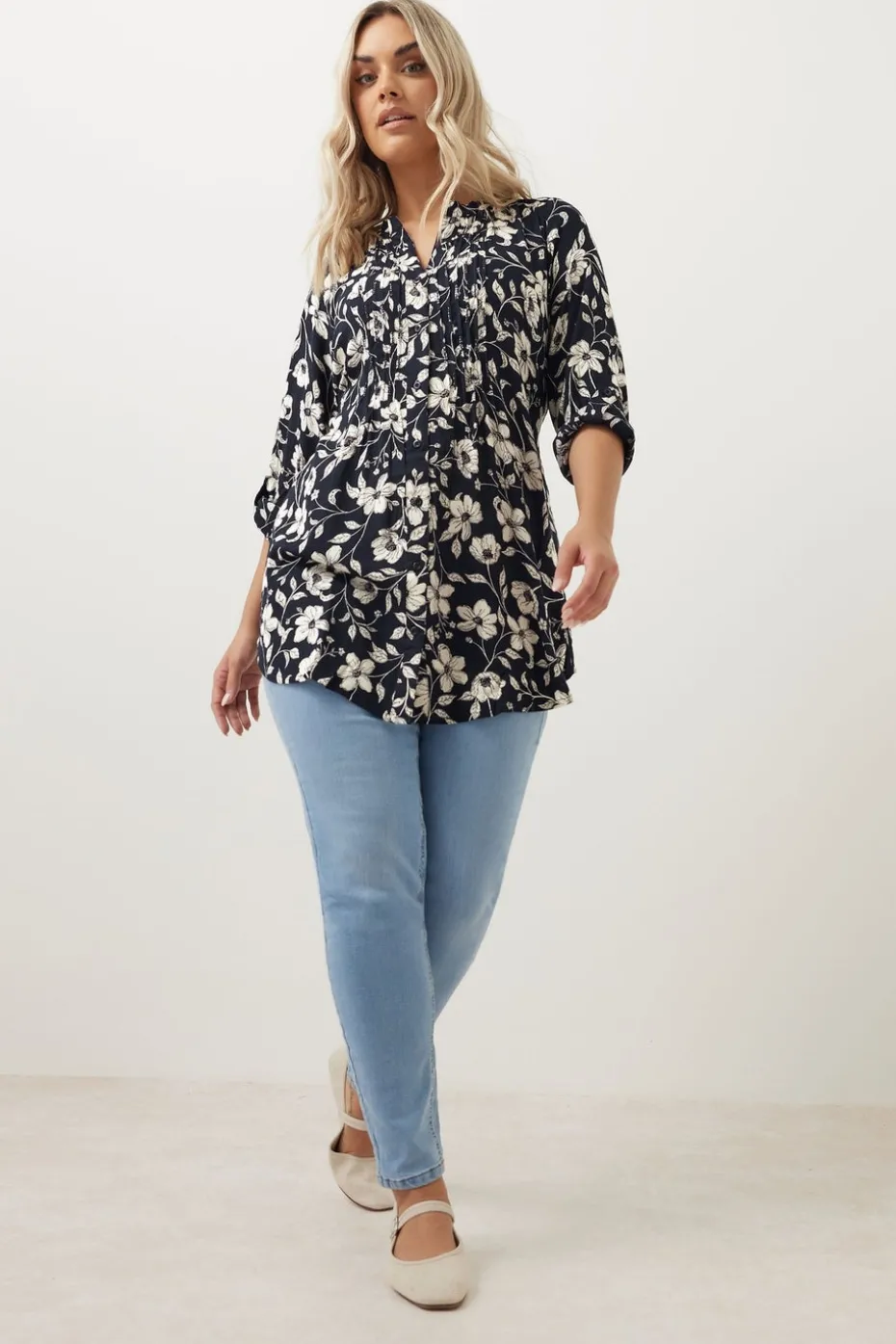 Be the first to review “Yours Curve Navy Blue Floral Pintuck Blouse” Cancel reply